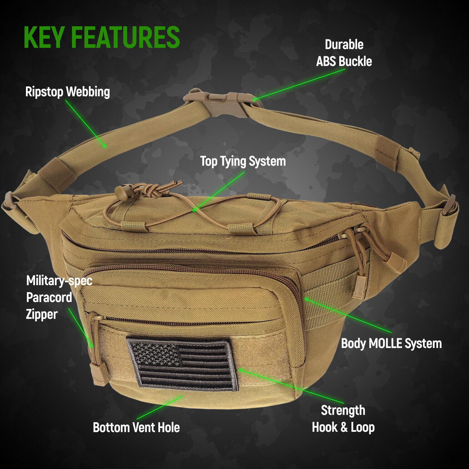 CONFORT PERSONNALISɠ: Sangle à tirer pour un accès rapide à vos objets. Ce sac banane tactique est un sac multifonctionnel pouvant être utilisé comme sac banane, sac à bandoulière, sac banane ou sac à bandoulière. Deux poches triangulaires pratiques sont idéales pour les pièces de monnaie, les munitions ou les petits outils. Deux élastiques latéraux permettent de fixer des sangles plus longues. CONCEPTION MULTIPOCHES : Notre sac pour homme comprend une poche avant pratique pour un téléphone portable de 17,5 cm ou des objets fins. Sac banane,tactique Molle,militaire en Nylon,de pour femmes et hommes pour randonnée de Camp Cette fonctionnalité garantit un ajustement confortable et sûr pour un large éventail d'utilisateurs, vous permettant de partir à l'aventure sans gêne. Sangle de taille réglable de 81 cm à 132 cm grâce à une boucle à dégagement rapide. Ce sac banane tactique est un sac multifonctionnel pouvant être utilisé comme sac banane, sac à bandoulière, sac banane ou sac à bandoulière. Il s'adapte à une variété de tenues et de styles décontractés. Fabriqué en nylon Oxford 1000D haute densité, il résiste aux rayures et aux éclaboussures Sac Banane Avec Poche Arme Huntvp Sac Banane Tactique Sac Banane Homme Femme Sacoche Ceinture Militaire Pour Randonnée, Cyclisme, Alpinisme Course Sports Extérieurs,Chasse (Marron-m Banane Tactique Avec Poche Pour Arme La poche arrière dissimulée offre une protection supplémentaire pour votre passeport, votre carte d'identité, votre carte de crédit, votre portefeuille et vos objets essentiels. Il s'adapte à une variété de tenues et de styles décontractés. Un sac banane tactique est un petit sac à bandoulière, généralement porté autour de la taille, qui permet de transporter des équipements de manière pratique et sécurisée Fabriqué en nylon Oxford 1000D haute densité, il résiste aux rayures et aux éclaboussures. Sangle de taille entièrement réglable (largeur : 3,7 cm) jusqu'à 132 cm grâce à une boucle à dégagement rapide. Sac banane tactique, sac banane militaire, sac banane utilitaire pour randonnée, escalade, pêche. Elle est suffisamment grande pour transporter vos téléphones, porte-clés, boussole, mouchoirs, GPS, appareils photo numériques, gadgets et autres objets.