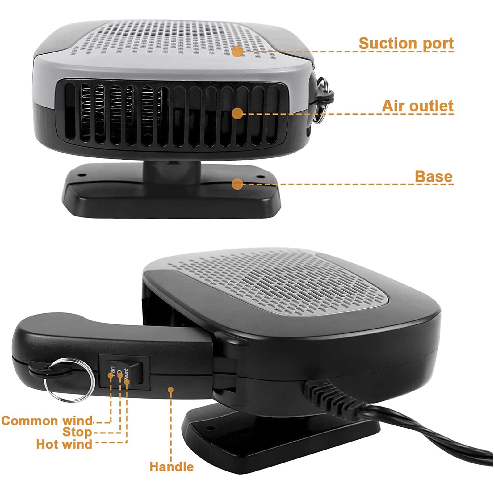 Ventilateur de refroidissement et de chauffage Por... – Grandado Branchez-le simplement sur la prise allume-cigare et il dégivrera ou dégivrera vos vitres rapidement et efficacement. Chauffe Voiture, 12V 150W Ventilateur De Chauffage Et De Refroidissement 2 En 1 Ventilateur De Chauffage Electrique Portable Avec Prise Allume Cigare Degivreur De Pare Brise Rotatif A 360 Degres 90480046 Le désembueur de dégivreur de pare-brise de radiateur de ventilateur de voiture portable peut rapidement éliminer la buée et le givre sur le pare-brise de votre véhicule en faisant circuler l'air chaud, assurer votre sécurité de conduite. [Conception considérable] - Le ventilateur de désembuage de voiture électrique adopte une conception creuse sur le dessus, une entrée d'air supérieure, un grand volume d'air, un dégivrage plus rapide. Rotation à 360 °, réglage haut et bas, réglage libre, laissez l'air chaud souffler à l'endroit souhaité. 150W 12V 2 In1 voiture camion chauffage ventilateur de refroidissement [Facile à installer] - Mettez le tapis antidérapant ou fixez-le avec du ruban adhésif double face, puis branchez-le dans la prise allume-cigare de votre véhicule et allumez-le, le dégivreur de vitres de voiture fait très peu de bruit. [Ventilateur de chauffage de voiture efficace] - Le désembueur de dégivreur de pare-brise de 150 W peut rapidement chauffer l'air sans attendre que votre moteur se réchauffe. Ce produit est un désembueur, ne peut pas chauffer l'ensemble du véhicule. État : 100 % neufMatériau : ABS + ventilateurCouleur : noir-grisPuissance : 150WTaille du produit: 15x13x8., 5cm/5., 9x5., 1x3., 3inLongueur du câble : 140 cm/55 poucesPoids net : 400 gLe forfait comprend :1 x chauffage de voiture 12vNoter:1., En raison de la différence de réglage de la lumière et de l'écran, la couleur de l'article peut être légèrement différente de celle des images., 2., Veuillez permettre une légère différence de dimension en raison de différentes mesures manuelles.