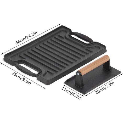 Il assure également une bonne répartition et rétention de la chaleur. La poêle grill s'adapte à tous types de feux y compris induction. La poele a griller en fonte a un fond strié pour récupérer les jus, ce qui permet de saisir les viandes, volailles, poissons et légumes sans avoir les aliments en contact avec son propre jus 45cm -Longueur de la plaque plus deux poignées en fer : 48 cm -Hauteur : 37 cm -Épaisseur de paroi : 6,8 mm Remarques : Éloignez les enfants de la plaque de cuisson, surtout si elle est sur un feu ouvert ! 【Utilisation multifonctionnelle】 : grâce à la conception des pieds de table amovibles, la plaque de cuisson élargit la gamme d'utilisation pour les feux de camp ou divers barbecues. 【Sac de rangement étanche】 : l'intérieur du sac est en tissu imperméable, car le produit doit être arrosé après utilisation et refroidi avant stockage. Appliquez une fine couche d'huile végétale pour protéger la peau noire et rouillée de la poêle en fer. Cela augmente leur durée de vie et aide à réduire le collage des aliments pendant la cuisson., Plus facile à nettoyer. Plaque de gril polyvalente pour griller, cuire et rôtir directement sur le feu de camp ou sur le gril de la bouilloire, adaptée pour griller de la viande, du poisson et des légumes, une variété d'aliments Pour éviter les brûlures accidentelles. Poêle grill en fonte rectangulaire Accessoire Camping Jardin YUENFONG Poêle à Griller En Fonte Avec 3 Pieds Plaque à Accessoire Feu De Camp Fonte 【Détachable et facile à installer】 : les trois pieds sont détachables, ce qui le rend facile à transporter et à ranger. Si vous devez déplacer la plaque à pâtisserie, nous vous recommandons de porter des gants. Conseils pour les soins quotidiens : 1., Il n'est pas recommandé d'utiliser du détergent ou des billes d'acier pour nettoyer la plaque de cuisson (car cela endommagerait le film de rouille noire sur la plaque), mais il peut parfois être nécessaire de le faire en fonction de la situation., 2., Laver et sécher au feu. Si la poêle ne sera pas réutilisée dans les prochains jours, il est conseillé de l'enduire d'une fine couche d'huile végétale. 【Construction de haute qualité】 : fabriquée en fonte de haute qualité, elle est plus épaisse que les poêles à griller traditionnelles et a une construction solide et durable.