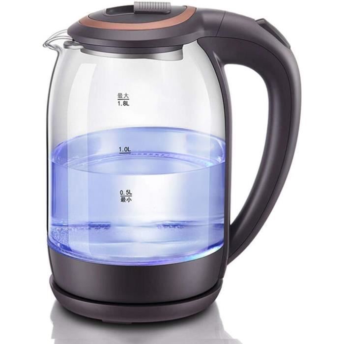 Bouilloire Électrique Améliorée, Bouilloire Électrique En Verre, Bouilloire À Contrôle De Théière électrique 1.8 Litres Chefman Bouilloire électrique De 1 L Avec Lumières LED, Arrêt Automatique, Couvercle Amovible Théière Filtre Inox Amovible SÉCURITÉ GARANTIE : La bouilloire Beper est dotée d’un arrêt automatique en fin d’ébullition ou lorsque l’eau s’épuise, ainsi que d’un système de protection contre la surchauffe. Élégance et fonctionnalité se rencontrent dans la bouilloire électrique Beper, conçue pour ceux qui aiment servir avec style directement à table. Les éléments chauffants dissimulés et la plaque en acier inoxydable garantissent efficacité et durabilité, tandis que le filtre amovible en acier inoxydable, idéal pour les thés en vrac et les tisanes, est facile à nettoyer au lave-vaisselle. BEPER - Bouilloire électrique - 8056420221848 - Maison Dotée d'un arrêt automatique en fin d'ébullition ou en cas de manque d'eau, et d'un système de protection contre la surchauffe, pour une utilisation sûre et sereine, la puissance de 2200 W assure une ébullition rapide et silencieuse. Théière en verre avec filtre en acier inoxydable et couvercle de couleur beige-kaki, avec bec verseur anti-gouttes, convient pour la préparation de thé en vrac CARAFE EN VERRE BOROSILICATE DE 1,8 L AVEC ÉCLAIRAGE LED : La bouilloire est résistante à la chaleur et offre un effet lumineux sophistiqué pendant l’ébullition. La carafe en verre borosilicaté de 1,8 L, résistante aux chocs thermiques, est sublimée par un élégant éclairage LED pendant le fonctionnement.