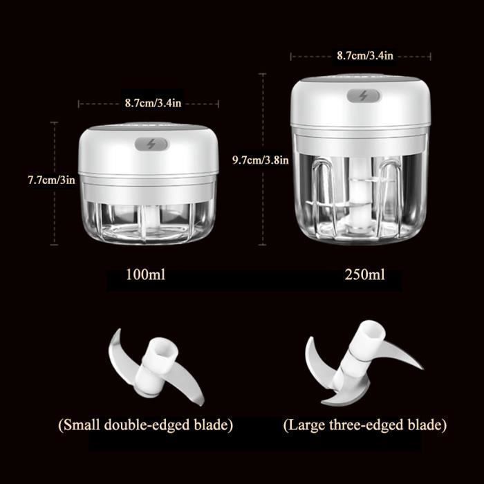 Hachoir électrique Sans Fil Blanc Compact Mini Hachoir électrique Sans Fil, Hachoir à Ail Portable Puissant, Broyeur à Oignons, Presse Mini Hachoir Electrique Fonctionnement simple à un seul bouton : obtenez la texture souhaitée avec des commandes intuitives à bouton-poussoir ; il suffit d'appuyer pour démarrer et relâcher pour arrêter, permettant une coupe précise sans paramètres compliqués. Facile à nettoyer : le corps de notre mini hachoir peut être démonté, et la lame peut être retirée après utilisation et lavée directement à l'eau. Facile à nettoyer sans laisser de résidus, très pratique. Merci d'avoir visité notre boutique. Nous nous engageons à vous fournir des produits de haute qualité et un service parfait Gagnez du temps en cuisine avec notre mini hachoir électrique sans fil. Pratique et compact, il vous permettra de hacher rapidement vos ingrédients préférés. Son design ergonomique et sa batterie rechargeable en font un outil indispensable pour toutes vos préparations culinaires Il est adapté pour les petits aliments. Rechargeable par USB et économie d'énergie : alimenté par une batterie de 3,7 V avec une puissance nominale de 30 W, ce hachoir sans fil offre une performance et une recharge pratique via n'importe quel port USB standard, réduisant ainsi la dépendance aux piles jetables. Mini Prep Pro sans fil | RMC100E | Cusinart Contenu de l'emballage : 1 hachoir électrique sans fil pour robot alimentaire. Caractéristiques : * Portable et sans fil : emportez votre hachage et votre traitement lors de vos déplacements avec cet appareil portable et sans fil. *Boutons poussoirs : les boutons poussoirs le rendent facile à utiliser pour la consistance souhaitée. *Robuste et : la lame en acier inoxydable est robuste et peut couper efficacement. * Broyeur électrique : un bouton, appuyez sur le bouton pour démarrer. *Tension de la batterie : 3,7 V., *Tension nominale : 5 V. Caractéristiques : * Nom de la pièce : électrique sans fil pour hachoir à aliments *Matériaux : acier inoxydable, polypropylène, verre., * Dimensions : 14,5 x 10 cm., * Capacité : 300 ml., * Alimentation : chargement USB., *Puissance nominale : 30 W. *Multifonction : ce hachoir n'est pas seulement destiné aux légumes, mais peut également être utilisé pour mélanger et transformer d'autres ingrédients.