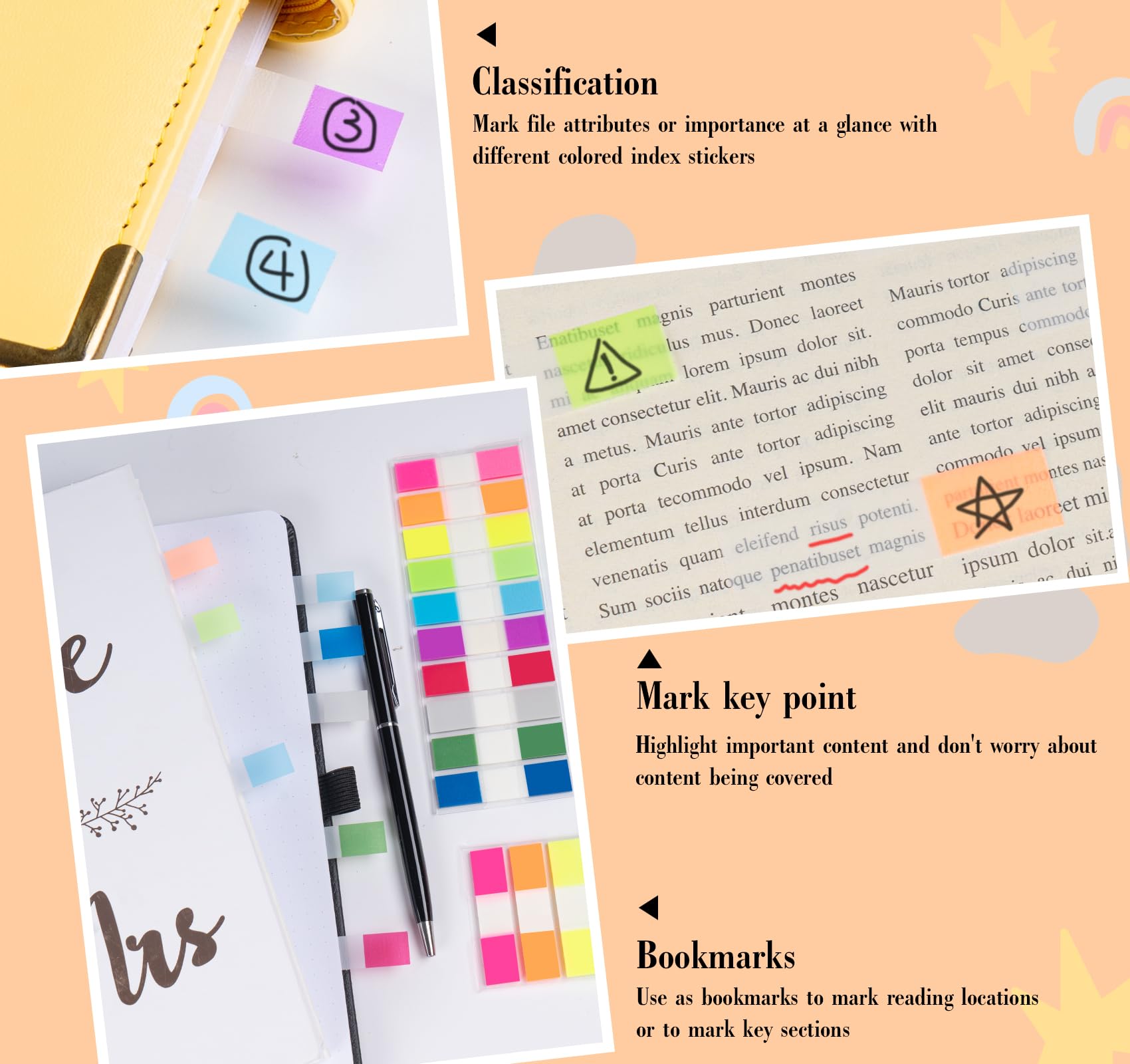 3 styles différents Avec 3 styles différents (couleur pleine, demi-couleur, demi-cercle), vous pouvez marquer des fichiers ou des livres DIY selon vos envies et rendre vos notes plus attrayantes et attrayantes. Contenu: Le paquet contient 6 notes adhésives en 3 styles, chaque style a 2 panneaux, 10 couleurs (Les couleurs Macaron donnera à vos notes un aspect haut de gamme) au total et 1200 notes adhésives Super collant et amovible Les bandes de languette sont super collantes, pratiques à coller et à marquer, faciles à enlever et à repositionner. Facile à enlever sans endommager le papier et ne laisse aucune trace. Adhésif Amovible: Adhésif amovible pour un repositionnement facile. Matériau: Les notes autocollantes sont fabriquées en PET translucide, imperméables, durables et réutilisables. Les étiquettes adhésives ne recouvrent pas le texte, ce qui permet de mettre en évidence les informations importantes et de les retrouver plus facilement. 2400 Pièces Post It Marque Page, Multicolore Post It Livre, Marque Page... Adhère en toute sécurité, s'enlève proprement. 760 Pièces Notes Autocollantes, Marque Page Adhesives,Feuilles Notes Organisation Livres Dossiers Marque Page Adhésif Pour Livre Agoer 1200 Marque Page Adhesives, 3 Styles De Marque Page Mini Post It Post It Transparent Contenu: Le paquet contient 6 notes adhésives en 3 styles, chaque style a 2 panneaux, 10 couleurs(Les couleurs Macaron donnera à vos notes un aspect haut de gamme) au total et 1200 notes adhésives. Ils sont parfaits pour les marquages de page, les marquages de livres, la lecture de notes, la classification des fichiers, les répertoires, les rappels d'informations importantes et les enregistrements et sont utiles pour les étudiants, les enseignants et le personnel de bureau. Design pratique Chaque version de la note adhésive a une règle transparente pour faciliter le marquage des pages. Design translucide Haute transparence qui ne cache pas les informations que vous avez marquées et est facile à écrire, n'affecte pas la lecture. Vous pouvez écrire des mots sur des onglets avec un stylo à bille.