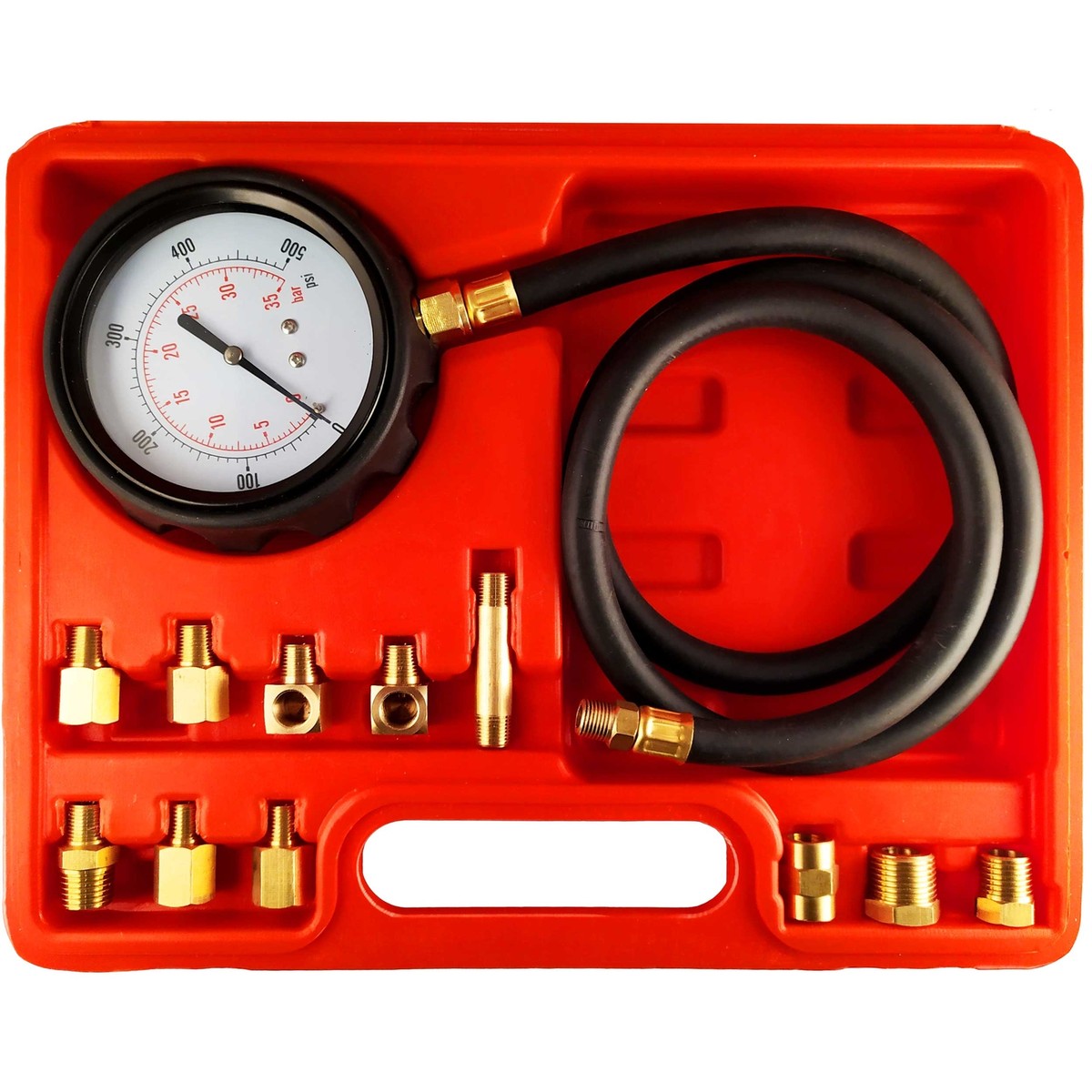 Diagnostic Moteur Automobile Kit Testeur Pression Huile Moteur 12 Pièces - Jauge 0-10bar Avec Adaptateurs Et Flexible - Pour Voiture Jauge Pression Huile 0-10bar