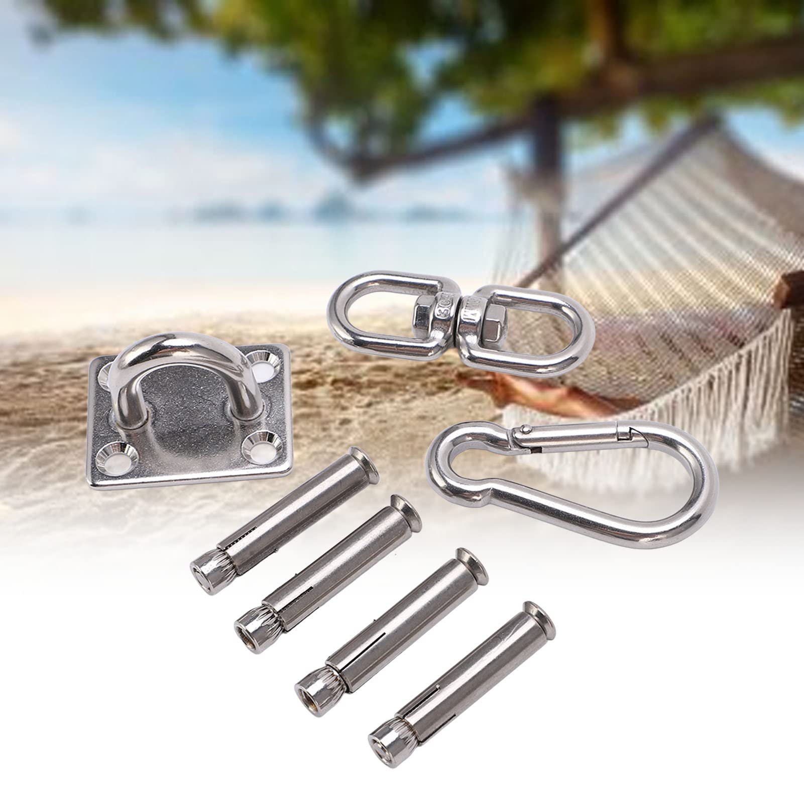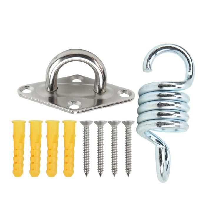 SPÉCIFICATION Type d'article : Pad Eye Plate Le kit de suspension pour hamac est livré avec un mousqueton M8 et une plaque à œillets M8 avec joint torique (L × l : 80 × 50 mm/diamètre : 8 mm), des vis en acier inoxydable et un boulon d'ancrage mural adapté au crochet de hamac PAD EYE PLATE Le crochet pour hamac en acier inoxydable se caractérise par sa grande résistance et sa ténacité. Vous pouvez l'accrocher selon vos besoins UTILISATION POLYVALENTE: Les supports de montage au plafond peuvent être installés sur différentes surfaces pour accrocher différents objets. Le crochet a une dureté et une durabilité élevées, peut être utilisé pendant une longue période Avec les outils nécessaires, vous avez le support de hamac solidement fixé à votre plafond en quelques minutes Kit De Suspension Pour Hamac - Kit De Suspension Pour Hamac, Arbre En... Avec une capacité de charge de 250 kg/551 lb, les kits de balançoire vous permettent de suspendre votre hamac au plafond de manière stable. Kit de suspension pour hamac robuste, crochets de plafond à Kit Crochet BeneLabel MatéRiel De Suspension Pour Hamac, 360 Pivotant Kit D'Accrochage Au Plafond Support De Montage Avec Boucle De Sécurité Quincaillerie Pour Bois Corde Yoga/Cerceau Aérien/Sac Frappe, 1200lbs Crochet Mural Grande capacité de transport : le kit de fixation pour hamac a une capacité de charge élevée jusqu'à 250 kg/551,2 lb, ce qui est suffisant pour la plupart des applications quotidiennes, 4 vis robustes assurent résistance et sécurité Le système de support à 4 points assure la résistance et la sécurité STABLE ET DURABLE Le set de suspension pour hamac est en acier inoxydable Oremium, il est inoxydable, résistant à la corrosion, robuste et durable et a une longue durée de vie. Il est recommandé de l'installer sur des surfaces en béton. APPLICATION Pour attacher les yachts, mais aussi comme accessoire de bagagerie et de ménage, sur les voiles d'ombrage, le linge de maison, les bateaux, les engins de levage, les décorations architecturales.