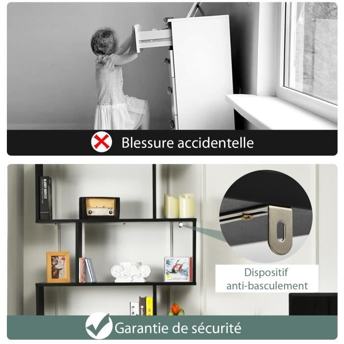 NETTOYAGE ET ENTRETIEN FACILES : Le meuble à cubes ouverts a une surface imperméable : les taches se nettoient rapidement. IDMarket - Etagère bibliothèque Colette avec 11 Compartiments Noir et Effet Bois H.143 cm Fabriquée en aggloméré, l'étagère est robuste et stable, avec une capacité de charge de 20 kg par étagère, et elle est également équipée d'un dispositif anti-basculement pour assurer une utilisation sûre 6 compartiments ouverts, idéaux pour ranger des photos, des trophées, des pots de fleurs, des livres et d'autres objets. CONSTRUCTION DE QUALITÉ ET DÉTAILS : cette étagère au design ouvert est fabriquée à partir de panneaux en bois massif très épais. Les formes irrégulières en S remplissent à la fois une fonction de rangement et de décoration. De plus, avec ses panneaux épais en bois massif, ses ferrures anti-basculement et son panneau arrière renforcé, elle garantit stabilité et durabilité. De plus, sa surface présente une simulation exquise de grain de bois, donnant au meuble une texture haut de gamme qui met en valeur son style raffiné. Cette étagère en forme de S allie esthétique artistique et fonctionnalité pratique, avec 6 compartiments ouverts pour photos, trophées, pots de fleurs, etc. Bibliotheque Murale COSTWAY Bibliothèque à 5 Niveaux En Forme De S, 6 Compartiments, Étagère De Rangement, Meuble étagère Murale En S Les patins antidérapants à la base empêchent les rayures sur le sol et augmentent la friction. Etagère bibliothèque grise en S pas cher - SOFIA | ID Market Spécifications techniques : Couleur : marron/blanc Matériau : aggloméré Dimensions totales : 80 x 30 x 119 cm Poids total : 135 kg Poids net : 18 kg Pièces : 1 x étagère 1 x notice DESIGN ÉLÉGANT ET DISTINCTIF : cette bibliothèque moderne se caractérise par une forme irrégulière unique, qui non seulement augmente l'efficacité du rangement, mais agit également comme un élément décoratif qui enrichit l'espace. Dans le salon, le bureau ou la salle de travail, elle sert d'étagère de rangement, de présentoir ou de séparateur, polyvalente, ajoutant personnalité et style à la maison. La surface lisse et imperméable, ainsi que la structure ouverte, facilitent le nettoyage et l'hygiène quotidiens. Sa conception sans angles morts simplifie l'hygiène, ce qui permet de gagner du temps dans le nettoyage quotidien et de maintenir l'ordre plus longtemps De plus, sa partie inférieure comprend des patins antidérapants qui protègent le sol contre les dommages. Sa conception ouverte permet de modifier facilement la position des objets, ce qui contribue à créer un espace privé personnalisé et un style de vie ordonné. Sa forme irrégulière optimise le rangement et égaye l'espace de manière décorative.
