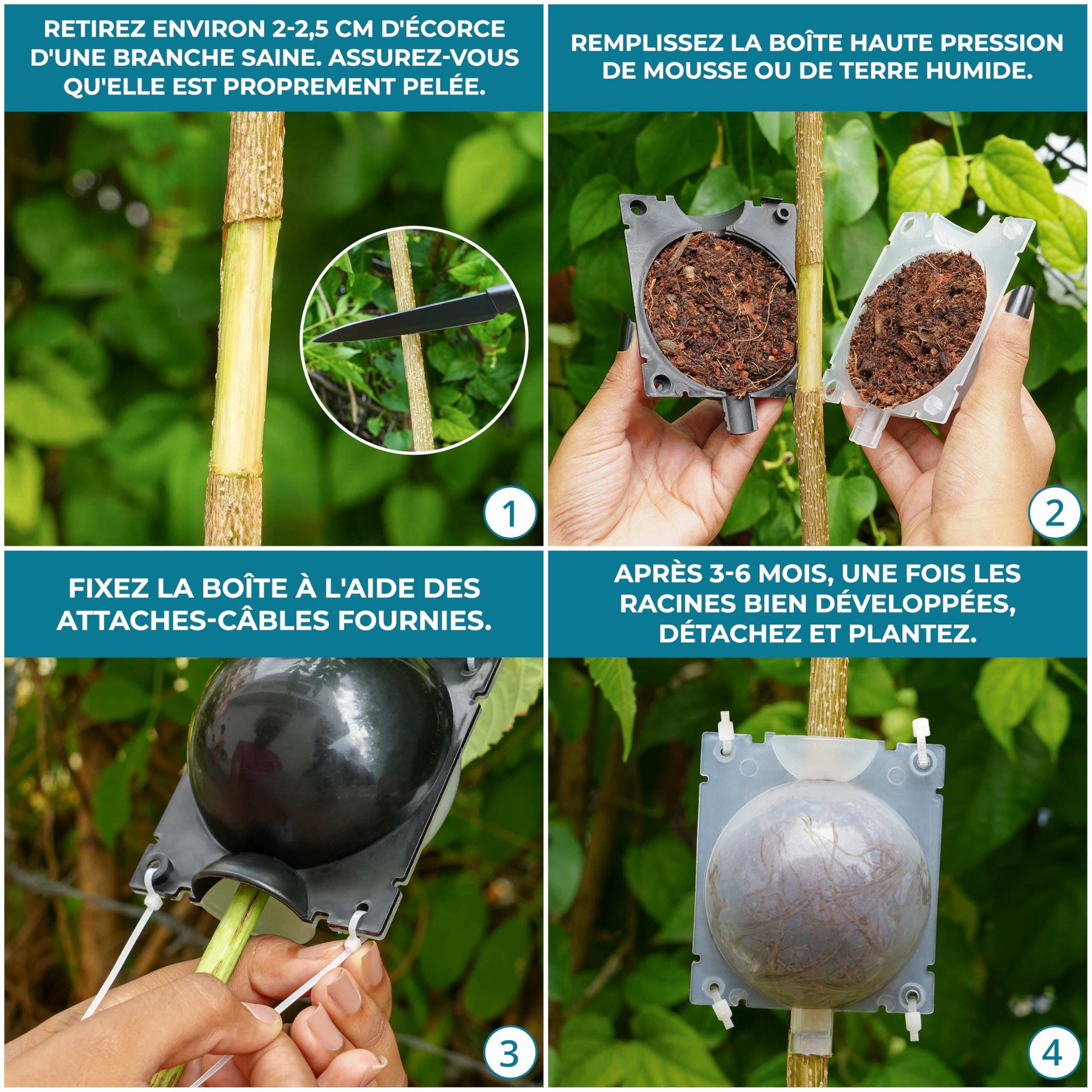 Son mécanisme assure un ajustement précis sans tracas. Mini Bac à Semis Vert avec Trous - Jardinage Urbain Sûres et équipées de trous de drainage, ces pods de coude aérien se distinguent comme des fournitures de jardinage polyvalentes, adaptées aux hommes et aux femmes passionnés par l'amélioration de leur jardin, patio ou ferme arrière. Scellé avec du ruban noir : amélioré avec un trou d'inspection pour les branches, ces capsules de coude dans l'air utilisent du ruban noir pour assurer un environnement stable en favorisant un temps d'enracinement optimisé et en améliorant l'efficacité du processus de greffe offrant des résultats fiables pour les besoins de propagation des plantes tout en maintenant un environnement sûr et contrôlé pour le développement naturel des racines Idéal pour les jardiniers qui recherchent des résultats fiables dans la propagation des plantes, cette conception garantit un ajustement sûr et adaptable pour différents types de plantes, améliorant l'efficacité du greffage et le développement racinaire sans tracas Boîte à racines réglable : conçue pour faciliter l'utilisation, cette taille aérienne comprend une structure de réglage chaude et un fond réglable qui favorise la propagation réussie dans diverses espèces végétales compatibles avec une plus grande stabilité. Matériau : polypropylène. Winter Shore Kit de Marcottage Aerien & Colliers de Serrage [Lot Parfait pour ceux qui veulent des outils de greffage stables et résistants pendant le processus de propagation des plantes. Les agriculteurs trouvent ces accessoires inestimables pour promouvoir une croissance robuste sans compromettre les normes de sécurité. Il est compatible avec les serre-câbles et dispose de quatre points de fixation pour plus de sécurité. 10 pièces Boîte de croissance de racines d'arbre, Outils de greffage de... Boule De Marcottage Lot De 10 Boules De Marcottage Aérien, Outils De Greffage Pour Plantes Et Fleurs 97208122 Boule De Marcottage Aérien Contenu du colis : 10 gaines à couches d'air., Remarque : 1., En raison des différents effets d'affichage et d'éclairage, la couleur réelle du produit peut être légèrement différente de la couleur affichée sur l'image., Merci !, 2., Les mesures étant prises à la main, les tailles indiquées peuvent varier de 1 à 2 cm.