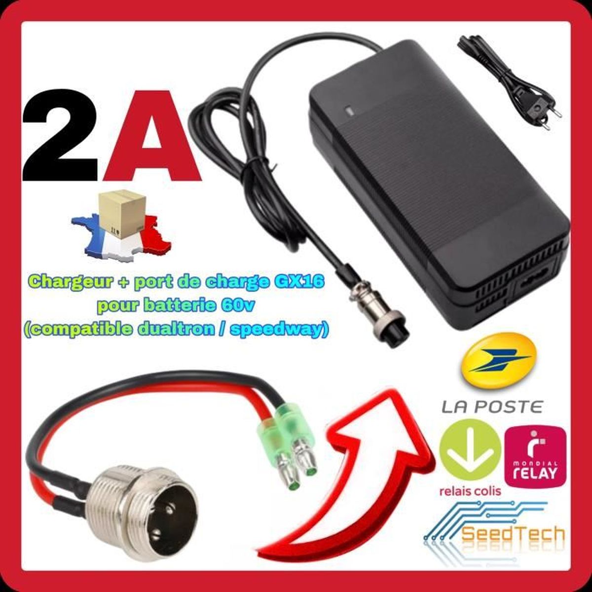 Chargeur haut gamme pour trottinette électrique Dualtron Compact Minimotors 60V ( 67.2V 2A ) GX16 √ Phase 3: Charge pulsée;, Avantages: 1., La commande MCU intelligente est adoptée pour la charge afin d'améliorer considérablement l'efficacité de la charge., 2., Mode de charge à trois niveaux pour éviter la surcharge, la surchauffe et le courant excessif., 3., 3A courant, qui est le courant le plus approprié pour charger la batterie à 100% et prolonger la durée de vie de la batterie., 4., La batterie est très sûre lorsqu'elle est pleine., 5., 3A est disponible pour n'importe quelle capacité et est meilleur choix., 6., Le matériau de l'enceinte est un matériau de classe A + et le câblage interne est un fil de cuivre de 0,5mm² d'épaisseur. Chargeur Batterie Li-ion 16S Chargeur Trottinette électrique 67,2v 5A 66,4v Pour Batterie 60v Avec Chargeur Trotinette Electrique Chargeur de batterie lithium - ion Qintrumiot 67., 2V 3A: Tension d'entrée: 100 - 240vac 50/60Hz Paramètres de sortie: Tension maximale: 67., 2V ± 0,2V Courant maximal: 3A ± 0,2A Pour: batterie lithium - ion 60V 16S Connecteur de sortie: Connecteur: GX16 Taille du produit: L166mm * W77mm * H58mm Poids net du produit: 450g la capacité suggérée est de 5Ah à 30Ah Matériaux exquis: le chargeur est fabriqué avec des matériaux de grade A +, du fil de cuivre de 0,5 mm² épais. Un grand ventilateur à l'intérieur, une meilleure dissipation de chaleur, afin qu'elle puisse prolonger la durée de vie du chargeur et assurer la sécurité., Le package comprend: 1 * 67., 2V 3A Charger avec connecteur DC5525/21, 1*adaptateur DC5525/21 à DC8mm, 1*DC5525/21 à RCA10mm, 1*DC5525/21 à GX16 Adapter,1*adaptateur DC5525/21 à XLR, (veuillez vérifier votre + et-de votre GX16 Et XLR connecteur avant de commander). 42V 3A Trottinette Prise chargeur pour Scooter Xiaomi Ninebot ES1 ES2 ES3 ES4 Accessoires EU... Chargeur trottinette électrique - DUALTRON MINIMOTORS - 67,2v 2A 66,4v - Batterie 60v - Port de Mode de charge en trois étapes: √ Phase I: charge à courant constant (3A); Modèle de charge à trois étapes: Chargeur de courant constant = vers = charge de tension constante = to = Chargement d'entretien, il peut protéger efficacement les performances de la batterie; Le chargeur rapide 3A peut être utilisé à quelque titre que ce soit, il peut améliorer l'efficacité de charge et gagner du temps. Conception de soudure mixte SMT/THT La nouvelle technologie rend le chargeur plus léger et plus stable