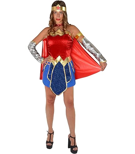 Déguisement Grand Heritage adulte Wonder Woman Rubies Déguisement D'avocat Pour Adulte, Unisexe, Taille Unique Déguisement Wonder Woman FACILE A ENFILER : Fabriqué par la marque Rubies, ce déguisement WonderWoman est conçu avec une grande attention aux détails. Vous devrez peut-être faire vos devoirs pour obtenir une force surhumaine et la capacité de voler, nous pouvons vous connecter avec la robe rouge, blanche et bleue qui permet aux méchants de savoir à quel point vous êtes bodacious. Déguisement adulte Wonder Woman Justice League comprenant une robe, bandeau, manchons et jambières RUBIES Déguisement - Bouclier pailleté Wonder Woman pas cher Licence Officielle DC Comics RUBIES - DC officiel - BATMAN - Kit déguisement Cape noire Masque... Costume Wonderwoman - Taille Adulte Femme M Robe de costume DC ComICS Wonder Woman sous licence officielle, cape, bandeau en tissu, poupées, ceinture et bottes.