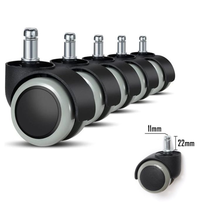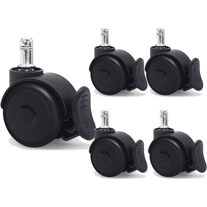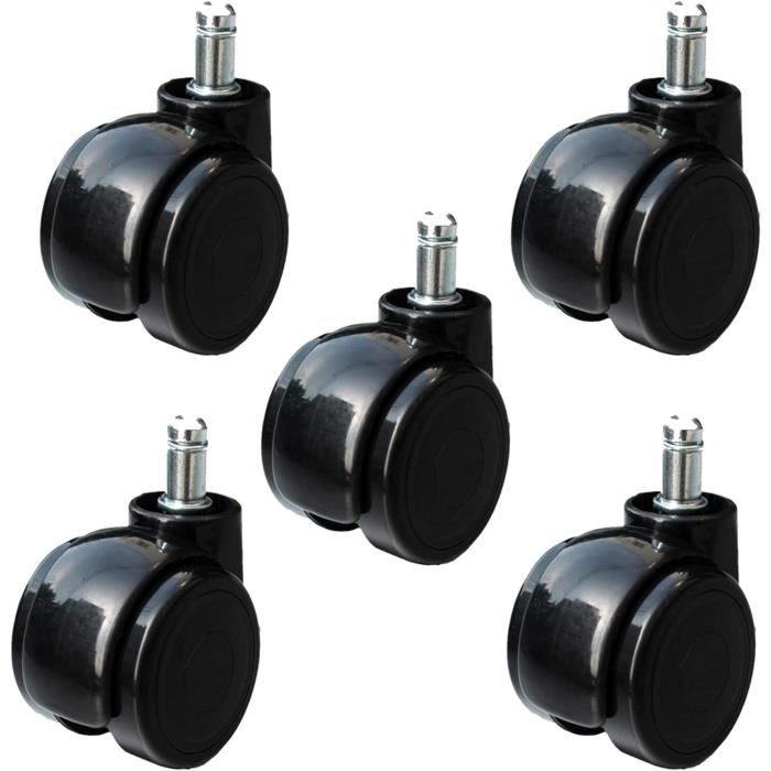 très résistant à l'usure, non-maculage conception- roulettes de sol dur pour les chaises de bureau (ensemble de 5)- plastique de haute qualitécouleur- Noir / Blanctraits- Treads enduit de polyuréthane- Diamètre PIN 11mm- Diamètre du rouleau 50 mm- Très résistant à l' abrasion et non-lubrifiant- Poids selon freinage roulettes de sécurité selon la norme DIN EN 12529: 1998- SGS testé- Convient pour chaises de bureau avec PIN 11mm (diamètre de la tige de métal)Conseillé pour- bois- stratifié- parquet- planches de bois- carrelagematériel- 100% polyuréthanelivraison- 5 rouleaux- Sans décoration, Diamètre PIN 11mm Diamètre du rouleau 50 mm Kit 5 Roulettes Chaise De Bureau AMSTYLE Jeu De Diamètre 11mm / 50mm Roulettes De Sol Dur Pin Noir 5 Roue Fauteuil Bureau Amstyle 5er Set Freiné Des Roulettes Pour Chaise De Bureau Blanc 11/50 Mm Roulettes De Sol Dur à retrouver en drive ou livraison au meilleur prix dans le rayon Accessoires de bureau Conçues pour sols durs comme le parquet et le carrelage, elles mesurent 50 mm de diamètre et ont une tige de 11 mm. Fabriquées en plastique de haute qualité, elles sont résistantes à l'abrasion et ne nécessitent pas de lubrification Roulettes fauteuil bureau pour parquet – Table de lit