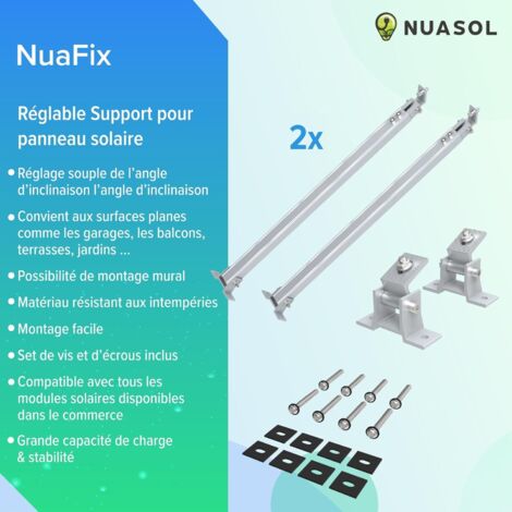 Accessoire Photovoltaïque Camping-car Support De Panneau Solaire Pour Toit De Tuiles - Rail De Montage - 7 Rails Aluminium Support Toit Large application : convient à la plupart des installations de panneaux solaires dans les camping-cars, les maisons et les bateaux, avec une forte ténacité et une haute résistance à la corrosion pour résister à des conditions météorologiques extrêmes. Stupéfiante Fixation Panneau Solaire Sur Fibrociment Isolant Thermique... Maintient le panneau sur le toit, sur les panneaux de trottoir sur le toit, vous gardez les panneaux solaires parfaitement. Utilisation : ces kits de panneaux solaires en aluminium sont conçus pour fixer les panneaux aux rails et établir une connexion solide entre les panneaux Contenu de l'emballage : Type A : 4 rails de 20 cm + 4 pinces centrales + 12 vis + 4 entretoises. Vous pouvez installer des panneaux solaires sur les toits plats et inclinés en brique, bardeaux d'asphalte, briques, bardeaux plats et tôles à feuillure debout. Système de montage de toit solaire PV haute résistance en rail en aluminium - Chine Rails de montage de panneau solaire, rail de montage solaire Utilisation : ces kits de panneaux solaires en aluminium sont conçus pour fixer les panneaux aux rails et établir une connexion solide entre les panneaux. Spécifications : * Type de produit : kit de support de panneau solaire., * Matériau : aluminium. Clip d'extrémité : pour panneau solaire de 35 mm. Remarque : les pinces centrales et les bornes achètent la taille appropriée en fonction de l'épaisseur de votre panneau solaire. * Caractéristiques de résistance : résistant à l'abrasion, aux produits chimiques, à la corrosion, à la poussière, à la poussière. Maintient le panneau sur le toit, sur les panneaux de trottoir sur le toit, vous gardez les panneaux solaires parfaitement. Et peut être utilisé à haute température, par temps froid ou humide. Clip central : pour panneau solaire de 35 mm.