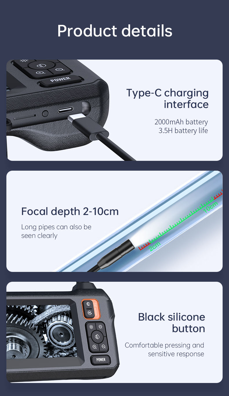 Étanchéité IP67 et design polyvalent : conçu pour résister aux conditions difficiles avec étanchéité IP67 et 8 lumières LED réglables pour les environnements sombres. Écran HD IPS de 4,3 avec vue large de 170° : profitez de visuels cristallins sur le grand écran IPS de 4,3, amélioré par un angle de vision ultra-large de 170° pour une inspection détaillée et sans distorsion en temps réel. Technologie prête à l'emploi : équipé d'un écran IPS de 4,3 pouces, cet endoscope industriel 1080p fonctionne dès la sortie de la boîte sans nécessiter d'appariement ou de téléchargement d'applications. Capacité de la batterie : 2000 mAh. Il suffit de l'allumer et de commencer à inspecter immédiatement. Convient pour le diagnostic automobile, les inspections de plomberie, l'entretien CVC, les évaluations de construction et les projets de bricolage à domicile. Parfait pour les réparations automobiles, la plomberie, les contrôles CVC, et plus encore. Les 8 lumières LED réglables offrent un éclairage optimal dans les environnements sombres, ce qui rend les problèmes cachés clairement visibles. Plage de mise au point : 20-100 mm. Étanchéité IP67 pour des applications polyvalentes : conçue avec une protection étanche IP67, cette caméra d'inspection résiste aux environnements difficiles, y compris les zones humides, les moteurs automobiles et les espaces poussiéreux. Caméra Inspection Endoscope Numérique Besshepplo Cikonielf Caméra D'inspection Endoscope Industrielle Caméra Endoscope Industrielle Endoscope HD Outil Diagnostic Auto Plomberie CVC Une caméra d'inspection compacte pour toutes les caisses à outils La plage de mise au point de 20 à 100 mm et l'angle de vision de 70 ° capturent des images détaillées des zones à problèmes avec une distorsion minimale pour des diagnostics précis. Endoscope avec 6 lumires LED Endoscope Double lentille 8 mm Camra Endoscope Industrielle 1080p... Contenu de l'emballage : 1 endoscope industriel avec fil., 1 câble USB., 3 accessoires. Il suffit de l'allumer et de commencer votre inspection immédiatement - Gagnez un temps précieux pour les professionnels et les bricoleurs. Consommation électrique d'arrêt : 30 uA. Endoscope d'inspection Caméra Endoscope Industrielle, Caméra D Type d'écran : écran couleur 4,3., Éclairage : 8 LED. Imagerie HD 1080p et autonomie prolongée de la batterie de 3,5 h : la technologie avancée de lentille (lentille + optique + algorithme) offre une résolution claire de 1080p, tandis que la batterie polymère de 2000 mAh assure jusqu'à 3,5 heures d'utilisation continue pour des tâches prolongées. Clartés HD avec vue grand angle de 170° : profitez d'une visibilité supérieure avec une résolution cristalline de 1080p et un angle de vision généreux de 170° sur l'écran HD IPS de 4,3. Objectif ultra-court de 2,7 cm pour les espaces restreints : doté d'un objectif compact de 2,7 cm, la moitié de la longueur des endoscope traditionnels, il navigue facilement dans les tuyaux étroits et les zones confinées où les caméras standard ne parviennent pas à manœuvrer.