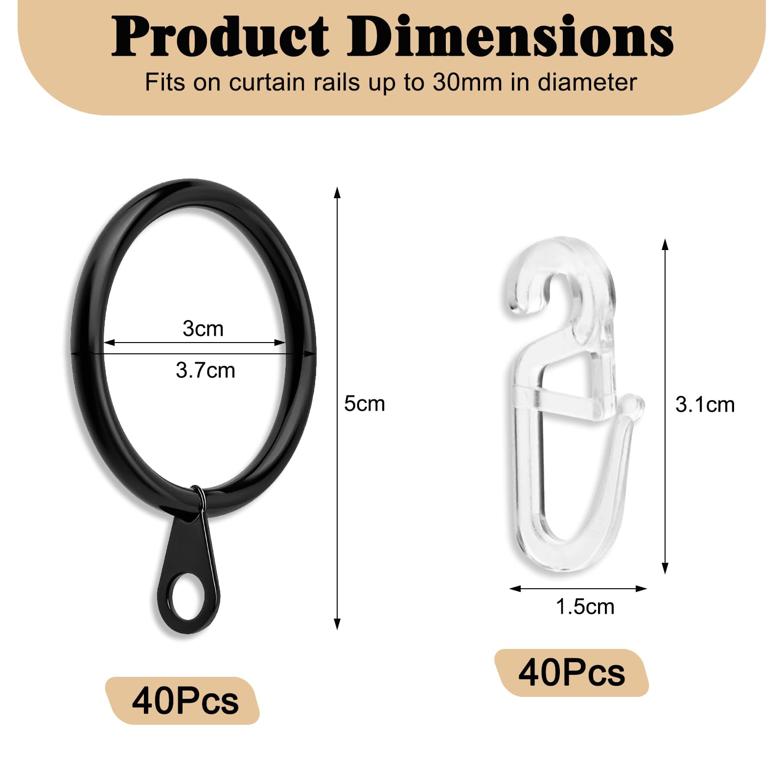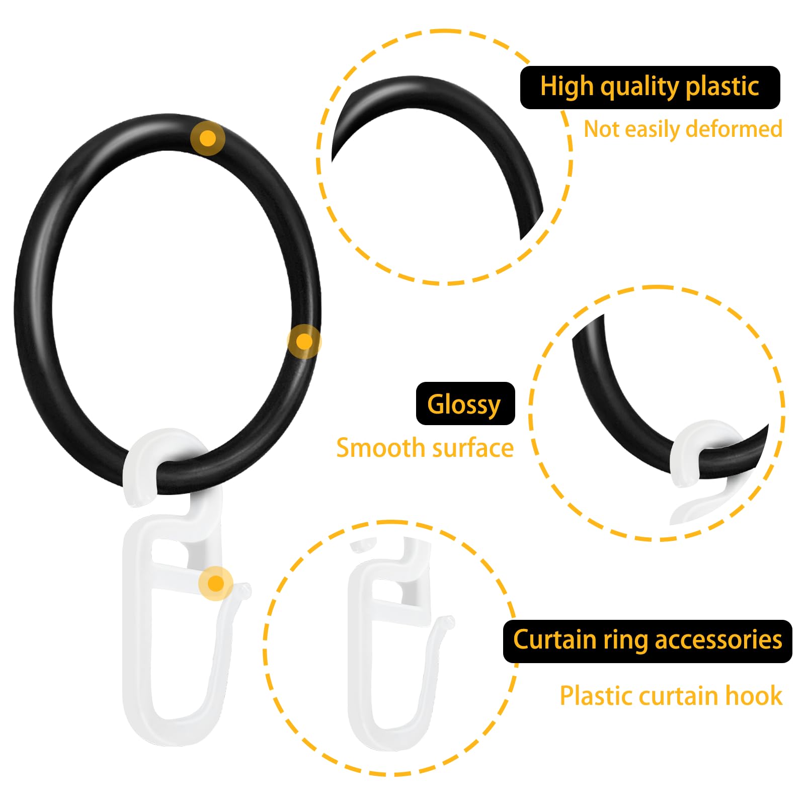 Convient pour les tringles à rideaux noires, les rideaux français, les rideaux de douche ou la décoration de la pièce - Conçu sur mesure pour la plupart des types de rideaux. Parfaitement combinés pour une suspension facile et une utilisation durable - Idéal comme accessoire de tringle à rideau pour la maison, l'hôtel ou les événements. Lot de 40 rideaux en métal, anneaux de rideau, anneaux de suspension et crochets de rideau en plastique, diamètre intérieur de 30 mm pour rideau de fenêtre, rideau de lit, rideau de douche (noir Lot De 30 Crochets De Rideau, Système À Cliquet En Plastique De 7,8 Cm... Sûr et respectueux de l'environnement : les anneaux et crochets de rideau sont magnifiquement polis et ont une surface lisse qui ne se déforme pas facilement et ne gratte pas les doigts et ne coince pas le cordon de rideau, ce qui le rend flexible et sûr. Lot de 40 anneaux de rideau de douche crochets de suspension pour le tri et l'organisation Installation facile sans outils : il suffit de glisser les anneaux de rideau en métal les uns après les autres sur la tringle, de fixer les crochets et c'est prêt. Ensemble parfait : contient suffisamment d'anneaux de rideaux avec clips pour les besoins de rechange ou plusieurs pièces. Anneau Rideau Jizxol Lot De 40 Anneaux De Rideau En Métal Et 40 Crochets En Anneaux Rideau Ajustement parfait et polyvalent : le diamètre intérieur de l'anneau de rideau est de 30 mm à 1,18 pouces, s'adapte à moins de 27 mm à 1,1 pouces de tringles de rideau, veuillez noter la taille lors de l'achat. Contient suffisamment d'anneaux de rideau avec clips pour les besoins de rechange ou plusieurs pièces. Ensemble d'accessoires de rideau de qualité supérieure : contient 50 anneaux de rideau en métal et 50 crochets de rideau en plastique robuste.