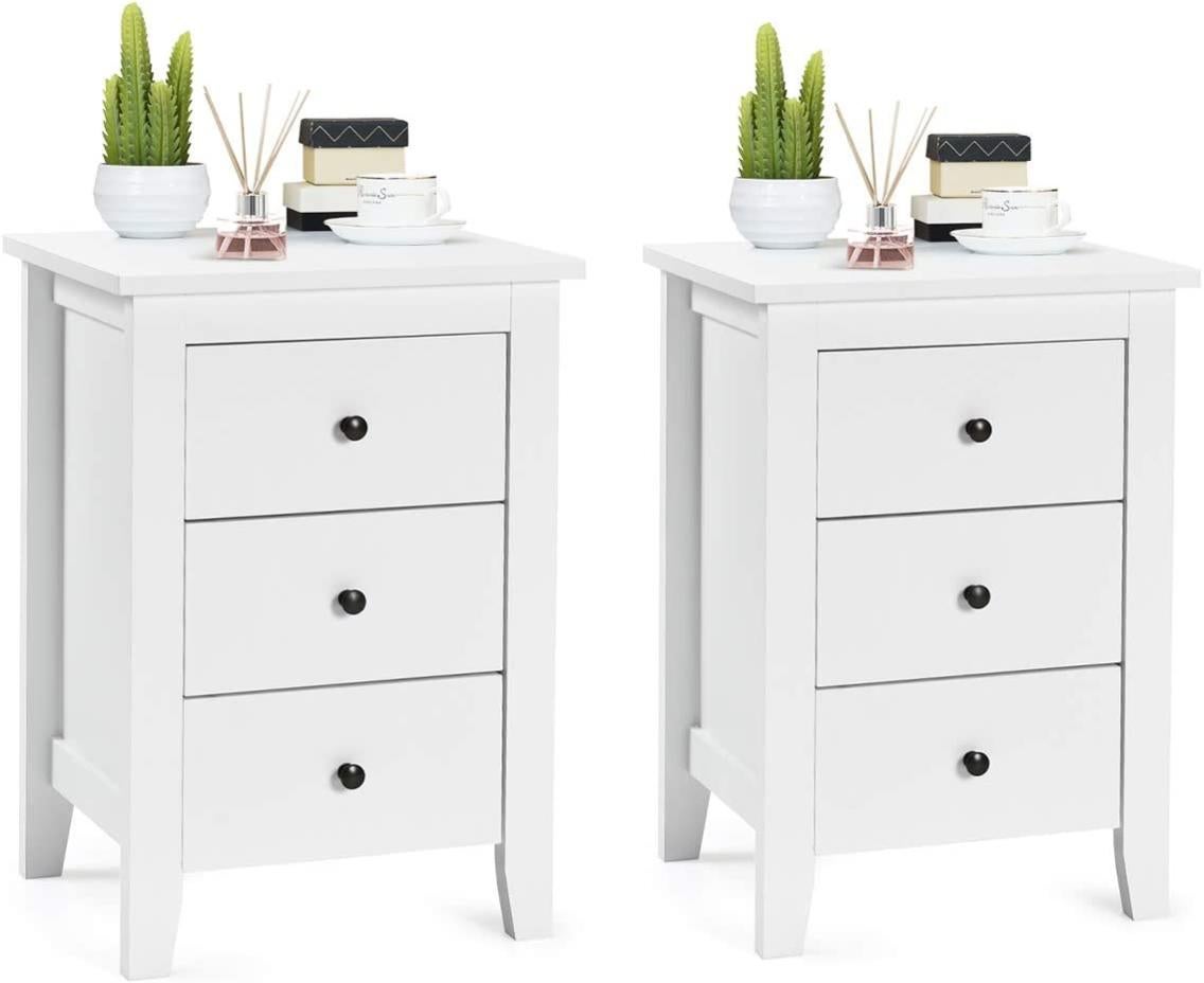 Le plateau de chevet de lit peut accueillir une lampe, un réveil, un cadre photo, un verre d'eau et un téléphone portable, tandis que les tiroirs peuvent contenir des magazines, des livres et autres effets personnels Disponible en blanc ou en noir, elle s'harmonise avec différents styles de décoration intérieure. Mesurant 45,5 x 38 x 64 cm, cette table de chevet est plus grande qu'une table de chevet standard, offrant ainsi un espace de rangement généreux. De plus, elle est équipée d’un dispositif anti-basculement pour une fixation murale sécurisée D’une hauteur de 64 cm, elle s’adapte parfaitement aux lits de toutes hauteurs Table D'appoint Salon Table De Chevet Blanche 2 Tiroirs Table De Nuit En Bois Chevet De Lit Commode Chevet Noire Un socle surélevé de 5,5 cm renforce sa stabilité Montage facile : Cette table de chevet est très facile à monter ; toutes les pièces sont numérotées et une notice illustrée est fournie ! Le plateau supporte jusqu'à 40 kg et chaque tiroir jusqu'à 10 kg. Finitions soignées : Grâce à des glissières de haute qualité, les trois tiroirs du chevet s’ouvrent et se ferment facilement et en douceur, facilitant ainsi l’accès à vos affaires. Mesurant 45,5 x 38 x 64 cm, cette table de chevet est plus grande qu'une table de chevet standard, offrant ainsi un espace de rangement généreux. Son large plateau permet d'y poser une lampe, des cadres photo, des tasses, un réveil et bien plus encore FOREHILL Table de chevet style campagne Ces 2 tables de chevet à trois tiroirs apportent une touche de sophistication et d'élégance à votre chambre grâce à ses lignes finement sculptées et ses poignées anneaux vintage. Sa finition laquée lisse est résistante à l'eau et facile à nettoyer. La table de chevet noire peut également servir de table d'appoint dans le salon D'une hauteur de 64 cm, elle est facilement accessible depuis le lit, même avec un sommier tapissier. Présentation du produit FOREHILL Table de Chevet Lot de 2 eois Table de Nuit avec 2 tiroirs Scandinaves Style Chevet de Lit pour Chambre à Coucher Salon149 Un doux compagnon près du lit : l' blanche de style vintage et les poignées dorées créent un cae parfait pour la chambre à coucher Lot de 2 tables de chevet utah 3 tiroirs Robuste et stable : Fabriquée en MDF de haute qualité et dotée d'une finition imperméable, chvet de lit lot de 2 avec 3 tiroirs sont particulièrement résistantes et durables.