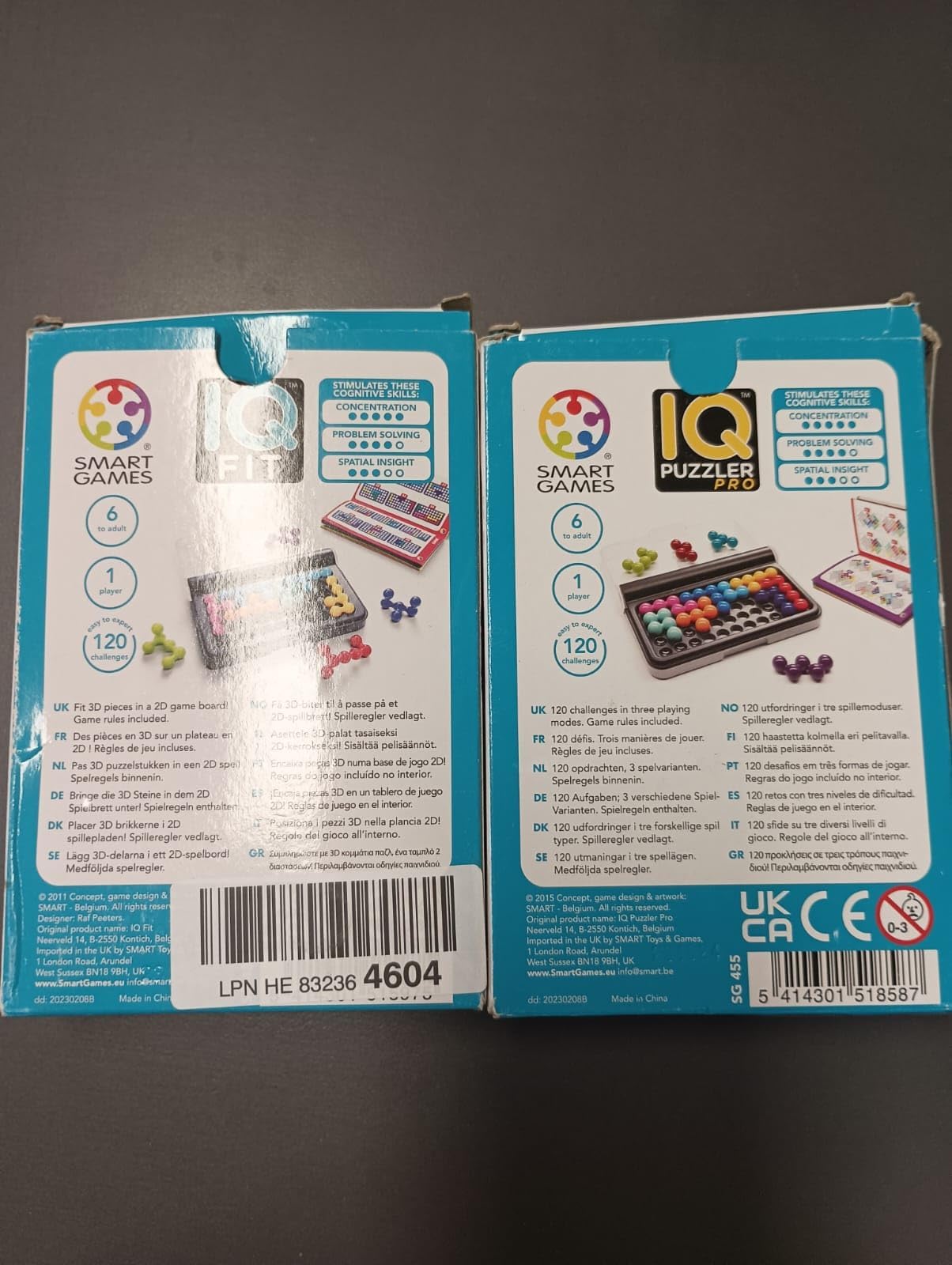 IQ-PUZZLER Pro est un jeu de réflexion de type casse-tête qui vous aidera à muscler vos neurones EXERCER LA PERCEPTION DES COULEURS: La combinaison de plusieurs couleurs stimule le système visuel des enfants et les aide à mieux percevoir et distinguer les couleurs. Jeu Logique 3D IQ Puzzler Pro, IQ Fit Jeux De Logique Avec 500 Défis En 2D Casse-tête 3d Enfants CASSE TÊTES POUR ENFANTS: Un jeu de logique 3D idéal pour les enfants et les adultes. Que ce soit à la maison, en voyage ou en camping, ce coffret de jeu IQ est le compagnon idéal pour des casse-têtes passionnants. LE CADEAU IDÉAL: Le livret magnifiquement illustré inclus contient de nombreux niveaux stimulants, ce qui en fait un cadeau idéal pour les enfants et les adultes qui aiment les défis créatifs. Conçu pour les adultes et les enfants de plus de 6 ans, ce puzzle pro propose 500 défis différents, alliant graphismes ludiques et construction tridimensionnelle à travers des modes de jeu variés Iq Puzzler Pro SmartGames - IQ Fit & IQ Link - 2 Jeux De Réflexion MATÉRIAUX DE HAUTE QUALITÉ: Notre IQ Puzzler Pro est fabriqué à partir de matériaux de haute qualité, durables, réutilisables, lisses et agréables au toucher pour une expérience de jeu optimale. Ce jeu de logique encourage la pensée inverse pour favoriser la perception des couleurs et le développement visuel. Il allie graphismes ludiques et construction tridimensionnelle ludique dans plusieurs modes de jeu, pour un plaisir infini pour tous les âges.