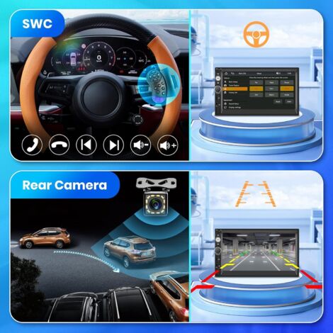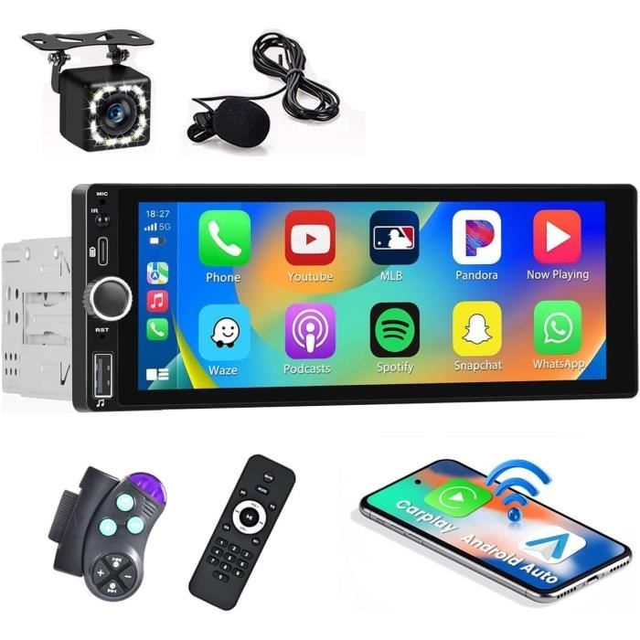 Grâce à la prise en charge de la commande vocale, le conducteur peut garder les mains libres et se concentrer sur la route en disant Hey Siri ou OK Google. Carplay Android Auto et contrôle vocal sans fil : L'autoradio 1 din prend en charge Carplay / Android Auto sans fil et câblé via Bluetooth ou USB, ce qui facilite l'accès à la navigation cartographique, aux contacts téléphoniques, aux e-mails, aux alertes, etc., sur votre smartphone. La radio FM recherche automatiquement les projets radio et en mémorise jusqu'à 6., De plus, le réglage de l'égaliseur permet d'améliorer la qualité du son. Si vous mettez la voiture en marche arrière, l'écran tactile de 6,86 pouces affichera automatiquement l'image de recul. Contrôle au volant : L'unité de tête simple din Android auto avec commande au volant d'origine rend plus sûr et plus pratique le contrôle de l'écran pendant la conduite. Bluetooth 5.0 Mains Libres Hikity Apple Carplay 1 Din Avec Android Auto Irror Link 7 Pouces Écran Autoradio Bluetooth Autoradio à écran Tactile HD : Écran tactile HD de 6,9 pouces, supportant la lecture vidéo 1080P, haute résolution 1280*480 avec écran tactile capacitif pour un fonctionnement plus sensible et plus précis Hikity - Autoradio 6,9 pouces 1 Din Carplay et Android Auto