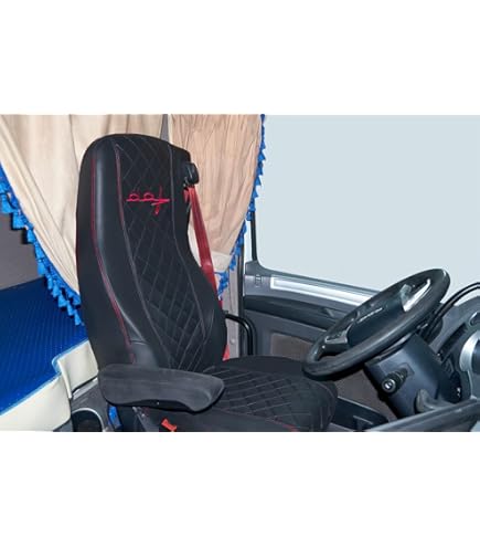 Les housses de siège sont uniquement compatibles avec les camions avec le volant à gauche. Tablette centrale pour DAF XG XG+ XF NG (10.2021-) avec leds pour les Generisch Housses de siège pour camion DAF XG, DAF XG , DAF XF 106, DAF CF, DAF LF, convient pour siège passager pliable ou à suspension pneumatique, en cuir synthétique (noir avec coutures orange Avec un look élégant. Contrairement à d'autres couvertures, elles n'absorbent pas la poussière et sont très faciles à entretenir. Tablette Camion Centrale Moquette DAF XF 2022, DAF XG, DAF XG... L'ensemble comprend : housses de siège conducteur [siège + dossier] Housses de siège passager [siège + dossier]. Les housses de siège sont en cuir écologique. Protection Siège Conducteur Passager DAF Housses De Siège De Camion Adaptées Pour DAF XG, XG+, XF à Partir De 2022 [nouvelle Forme] – Siège Passager Pliable – Noir/rouge Housse De Siège Daf Xf