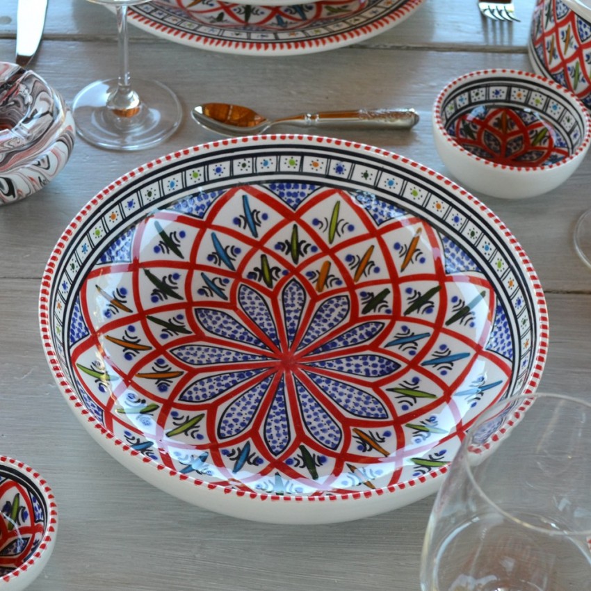 Cette jolie jatte, finement peinte à la main, apportera une touche orientale à votre table, en plat de service ou coupe à fruit. Description du produit Cette jolie jatte, finement peinte à la main, apportera une touche orientale à votre table, en plat de service ou coupe à fruit. - Diamètre : 31 cm / Profondeur : 8 cm - Passe au lave-vaisselle et au micro-ondes - Produit alimentaire garanti sans plomb Contenu du coffret 1 unité Vaisselle Décorative Sans Plomb Tajine Bakir Royal Pâte à Feu - D 31 Cm Exclusif Plat Pour Couscous Jatte Bakir bleu - D 31 cm VAISSELLE ORIENTALE BAKIR VERT - Diamètre : 31 cm / Profondeur : 8 cm - Passe au lave-vaisselle et au micro-ondes - Produit alimentaire garanti sans plomb , Fabrication artisanale , Décoré à la main