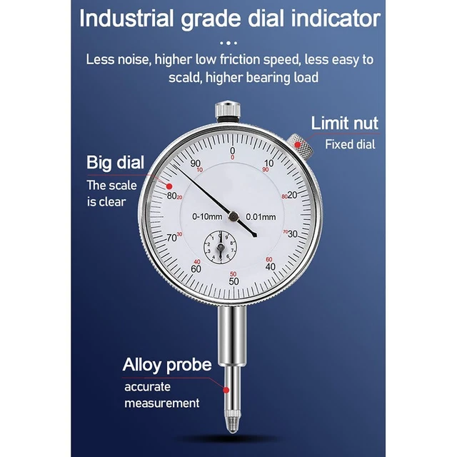 Indicateur de test de numérotation.Boîtier en plastique 0-10mm d Cuque Indicateur De Test à Cadran Indicateur à Cadran De Précision 261-014-01Catégorie: Indicateur Taper: Indicateur de test à cadran Code: 261-014-01 Brève description: Rencontrez DIN2270 Roulement bijou Double espacement d'échelle Avec deux pinces : 6mm et 8mm Indicateurs À Levier À Cadran - Epi Industrie