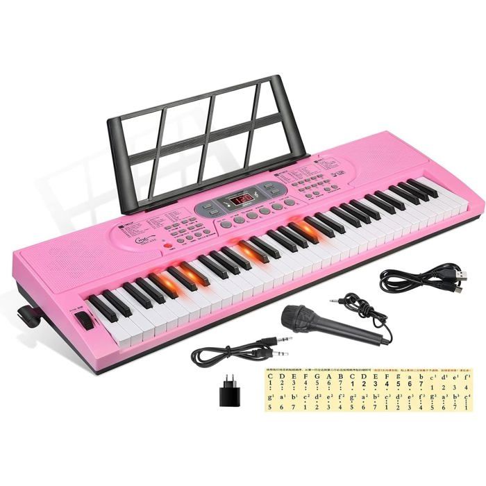 liste de colisage: Clavier électronique 1x32 touches (sans batterie) 1 x micro 1 x câble d'alimentation USB 1 x câble audio 1 x manuel d'instructions Clavier électronique à 37 touches, Piano, clavier ... – Grandado que vous souhaitiez brancher des écouteurs, des haut-parleurs externes ou d'autres appareils audio, ce clavier est là pour vous. [Outil de création musicale polyvalent] Ce clavier électronique à 32 touches offre 16 tonalités diverses, 10 rythmes dynamiques et 10 chansons de démonstration pour inspirer votre créativité musicale. son interface conviviale garantit une courbe d'apprentissage fluide pour les débutants et les enfants. [Conception compacte et légère] Mesurant seulement 44 x 22 x 6 cm, ce clavier électronique portable se glisse facilement dans un sac à dos ou un petit sac. partagez votre voyage musical avec vos amis et votre famille ou suivez vos progrès au fil du temps. Clavier Électronique - wowsuper - 61 Touches - Microphone Inclus 44 x 22 x 6 cm / 17,32 x 8,66 x 2,36 pouces Comment utiliser : Installez et utilisez directement. [Enregistrez et partagez votre musique] Équipé d'un microphone intégré et de deux haut-parleurs, ce piano électronique vous permet d'enregistrer vos performances et de les lire instantanément. Spécification : Type d'article : clavier électronique à 32 touches. Portable et polyvalent] Profitez de 16 tonalités, 10 rythmes et 10 chansons de démonstration sur ce clavier électronique à 32 touches. explorez 6 instruments de percussion et des effets sonores uniques comme le vibrato, le sustain et l'écho pour des possibilités créatives infinies Clavier électronique USB-C Piles AA Clavier électronique 32 Touches, 16 Tons, 10 Rythmes, Clavier Claviers électroniques [Pour les débutants et les enfants] Conçu pour les musiciens en herbe, ce clavier numérique à 32 touches dispose d'une sélection de tonalité de volume réglable et de commandes de rythme, ce qui le rend idéal pour les séances d'entraînement.