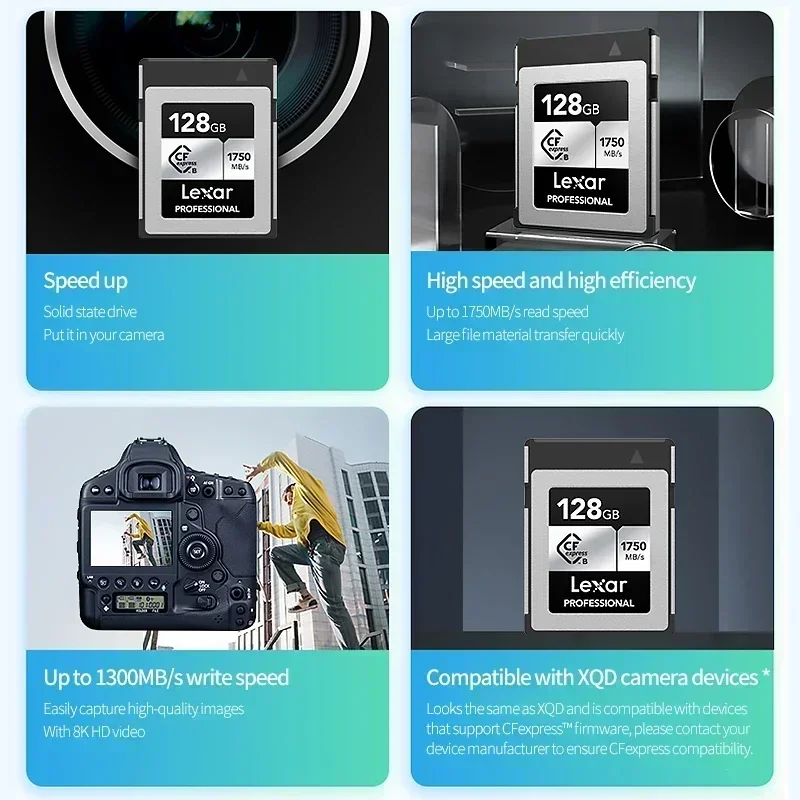 *Basé sur des tests internes ; les performances peuvent être inférieures en fonction du périphérique hôte, des conditions d'utilisation et d'autres facteurs. Ultra Haute Vitesse, Dites Adieu à l'attente Grâce à la technologie NVMe PCIe 3., 0, cette carte mémoire CF offre les mêmes performances élevées que les SSD haut de gamme, garantissant une transmission de données efficace et stable. La mémoire tampon de l'appareil photo se vide rapidement, ce qui évite efficacement de manquer des moments importants en raison de retards ou de latence d'écriture. Elle répond aux exigences des photographes professionnels et des passionnés d'imagerie qui souhaitent capturer sans effort des séquences haute résolution en 4K, 6K et 8K. Compatible avec FUJIFILM X-H2/X-H2S ; Cfexpress Carte Mémoire Type B Pcie Pour Caméra Xs 4K-8K Raw Pcie 128 Certains appareils photo utilisant des cartes mémoire XQD peuvent devenir compatibles après une mise à jour du micrologiciel. 【Ne Manquez Jamais Une Photo】Cette CF express Type B Memory Card utilise une mémoire flash TLC NAND de haute qualité pour gérer sans effort la prise de vue en rafale à grande vitesse de photos au format RAW ou l'enregistrement fluide de vidéos 8K Ultra HD. 【Performances Stables et Fiables】La carte mémoire CFexpress pour appareil photo est dotée d'une puce contrôleur haute performance et basse consommation intégrée, associée à un boîtier métallique avec dissipateur thermique intégré. 【Sécurité des Données】Les cartes CFX Type B utilisent des technologies avancées de gestion de la mémoire flash, notamment TRIM, S., M., A., R., T. *Certaines caméras XQD sont rétrocompatibles (mise à jour du micrologiciel requise pour les caméras XQD). 128 Go Carte Mémoire Numérique Cfexpress Type B Avec Étui Portable... Stockage Haute Performance Durable Dogfish CFexpress Carte Mémoire Flash CF Express Type B 128 Go 8 K 4 K RAW Pour Appareils Photo Et Caméscopes Nikon Canon Panasonic Carte Mémoire CFexpress Type B Compatible avec Panasonic S1/S1R/S1K, GH6 ; Elle combine des performances exceptionnelles, une fiabilité à toute épreuve et une compatibilité étendue, ce qui en fait la solution de stockage idéale pour vous aider à capturer chaque moment décisif. Compatible avec DJI Ronin 4D. La carte mémoire CFexpress Type B de Bitsjour est conçue à cet effet. Large Compatibilité Compatible avec Canon EOS R3/R5/R5C, EOS-1DX Mark III, EOS-C300 Mark III, EOS-C500 Mark II ; RAID, LDPC ECC et la gestion des défauts, ce qui améliore considérablement la fiabilité du transfert des données et l'intégrité des données stockées.