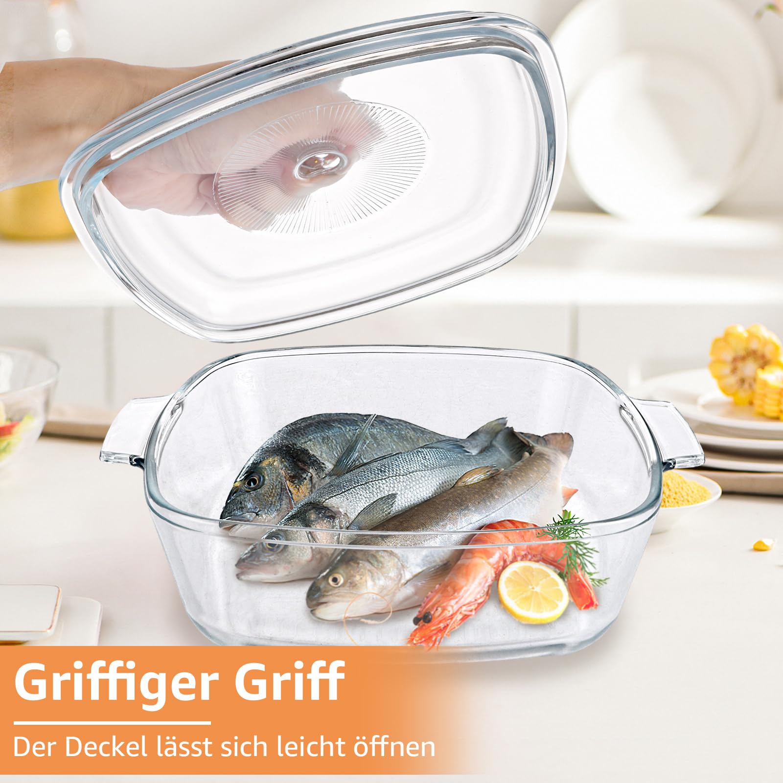 Petits prix et livraison gratuite dès 25 euros d'achat sur les produits YAYODS. Commandez YAYODS Plat à Four en Verre avec Couvercle 1000 ml - Plat à Lasagne Rond 21,5 cm en Verre Borosilicate - Cocotte en Verre Résistant à 300°C pour Micro-ondes, Four, Salade et Conservation TAILLE PARFAITE DE PORTION : le petit plat rond de 1,2 l est idéal pour 1 à 2 personnes - plus besoin de gérer les restes gênants. Résistant Four Micro-ondes Plat Four Micro-ondes Lave-vaisselle Plat à Gratin Verre Borosilicate 0,8L - 19,5x16,5x4,6cm - Micro-ondes Four Lave-vaisselle Plat Gratin Transparent Verre Borosilicate Four YAYODS Plat à gratin en verre avec couvercle 1,2 l Passe au four Le petit plat à gratin parfait en verre résistant à la chaleur pour les portions individuelles et les petits ménages. POIGNÉES PRATIQUES : le bol en verre avec couvercle convainc par ses poignées latérales ergonomiques : résistantes à la chaleur et sûres à manipuler - même avec des plats chauds (gants isolés recommandés) Utilisation polyvalente : le moule en verre pour micro-ondes convient pour : les casseroles croustillantes, les plats de viande juteux, les lasagnes, les gratins, les desserts ou tout simplement pour réchauffer des plats - un véritable ustensile de cuisine polyvalent Description du produit Kit pratique pour diff rents besoins le lot comprend trois bols en verre avec couvercle de 650 ml, 1000 ml et 1400 ml, ce qui vous permet de choisir la taille appropri e pour chaque repas Rangement compact et peu encombrant le couvercle plat du set de plats gratin permet d'empiler le plat de cuisson rond pour gagner de la place et de le ranger efficacement. Le couvercle... Gratin de pâtes jambon fromage au airfryer Verre borosilicate de haute qualité : résistant à la chaleur jusqu'à 300 °C. Verre borosilicate : le plat à rôtir en verre résistant au four avec couvercle est fabriqué en verre extra résistant à la chaleur (jusqu'à 300 °C) - convient au four, au micro-ondes et au congélateur sans risque de déformation Idéal pour 1 à 2 personnes : capacité de 1,2 l.