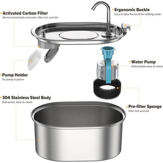Fontaine a Eau Wopet W300 - Véritable Filtre - Ultra Silencieuse - Distributeur 2L Fontaine à Eau pour Chat avec Filtration 6 étapes, Blanc Gris Distributeur Eau Automatique Chat Chien 3.2l PEKTACO Fontaine à Eau Pour Chat - Distributeur D'eau Automatique Pour Chien - Filtres De Fontaine Eau Chat Hydratation pure assurée : Conçu avec un système de filtration quadruple efficace. Compatible avec les chiens, chatons et chiots de diverses tailles de race, le distributeur de bols simplifie les besoins en boisson et en alimentation. Modes Hydratation Intelligents : Circulation d'eau automatique 24h/24, mode activé par mouvement détectant les animaux à 1., 5 mètre, avec des modes programmables s'ajustant aux habitudes de boisson spécifiques de votre chat Test : fontaine à eau en céramique Lawfery 2, 1 l pour chats et chiens Gain de temps : Solution idéale pour les propriétaires au rythme soutenu grâce au grand réservoir de 3,2 litres. Revue de la Fontaine d'eau PEKTACO pour Chats - Chat Chou Supprime les contraintes de remplissage régulier et garantit un accès durable à une eau propre pendant plus d'une semaine, favorisant le bien-être félin. Sa conception robuste favorise un accès constant à de l'eau propre, soutenant la santé générale des animaux domestiques.