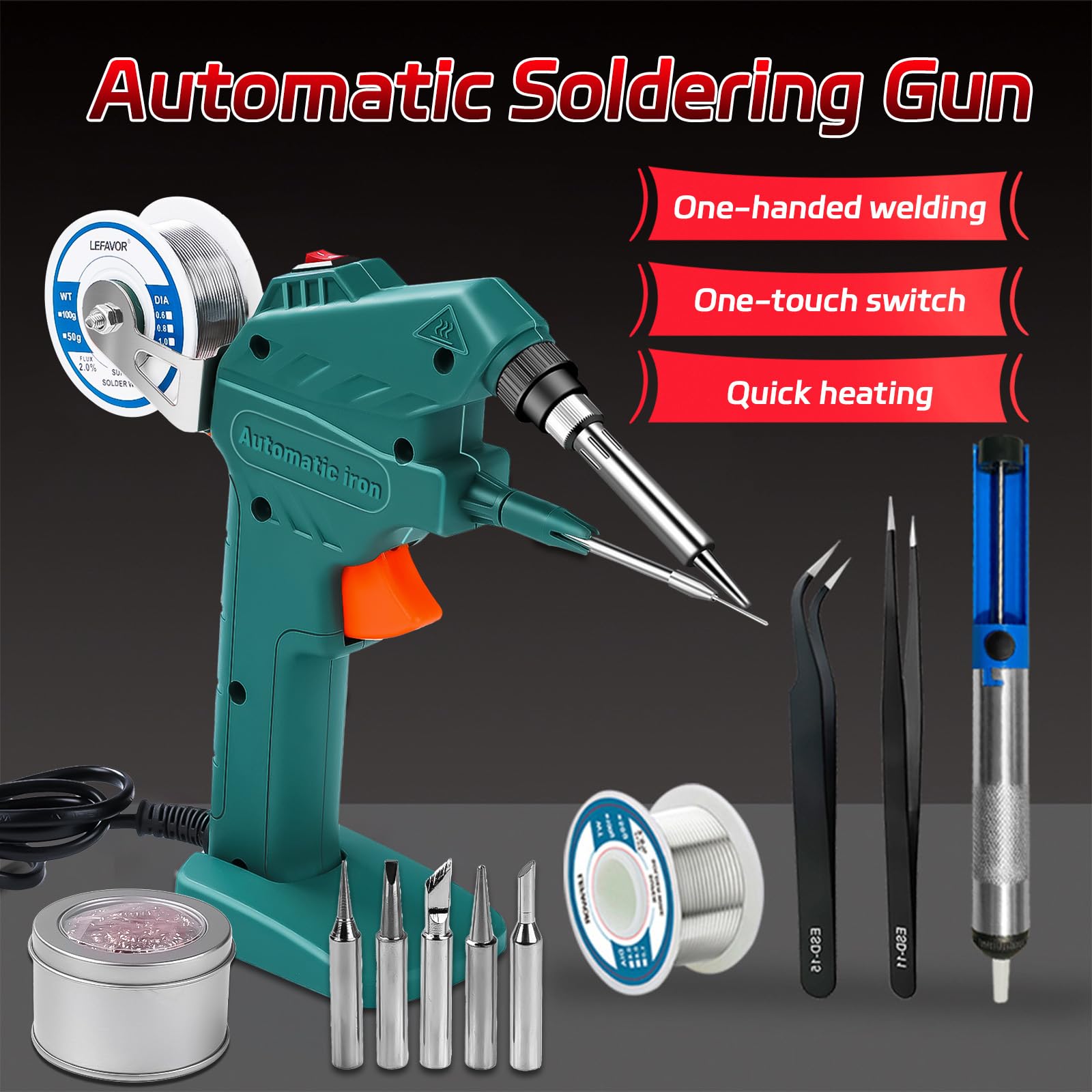 Description du produit Notre outil de soudage est doté d'une fonction de chauffage incroyablement rapide. Avec des pannes interchangeables et un temps de chauffe rapide, nos outils de soudure ultra-performants vous permettent de souder efficacement les pièces électroniques, les bijoux et autres objets. N’oubliez pas de vous procurer également du fil d’étain, de la pâte à souder ainsi qu’un support de fer Équipé d'un interrupteur d'alimentation. SÉCURITÉ ET EFFICACITÉ ÉNERGÉTIQUE AMÉLIORÉES AVEC INTERRUPTEUR D'ALIMENTATION : Équipé d'un interrupteur d'alimentation, cet outil offre une sécurité et une efficacité énergétique améliorées. Cette flexibilité garantit la facilité d'utilisation, en particulier lorsque vous travaillez dans des espaces restreints ou confinés. Outil Soudage Chauffage Rapide Pistolet à Souder Kit Soudure Complet 60W - Parfait Pour Bricolage Et Réparations électroniques Matériel Soudage Professionnel Kit Soudure électronique Bricolage L'interrupteur d'alimentation ajoute une couche de protection supplémentaire, vous permettant de travailler en toute tranquillité d'esprit, sachant que vous utilisez un outil qui respecte les normes de sécurité les plus strictes. L'interrupteur d'alimentation vous permet de contrôler facilement le fonctionnement de l'appareil, en veillant à ce qu'il ne soit actif qu'en cas de besoin. CORDON D'ALIMENTATION FLEXIBLE ET DURABLE: Le cordon d'alimentation de cet outil est conçu pour être souple et flexible, vous permettant de le plier et de le positionner selon vos besoins. ÉCHAFAUDAGE EN FIL D'ÉTAIN DÉTACHABLE POUR UNE MANIPULATION FACILE : L'échafaudage en fil d'étain de cet appareil est amovible, ce qui simplifie son utilisation. Tougs Fer à Souder Kit 60W Ensemble d'Outils de Soudure à Contrôle de Températu Cette fonctionnalité vous permet de manipuler l'outil sans effort, ce qui le rend pratique pour diverses applications. Ensemble de fer à souder à batterie, fer à souder sans fil, fer à souder portable, température réglable, chauffage ultra rapide pour kit de soudure électronique, coupe à chaud, crayon pyrogravure (san
