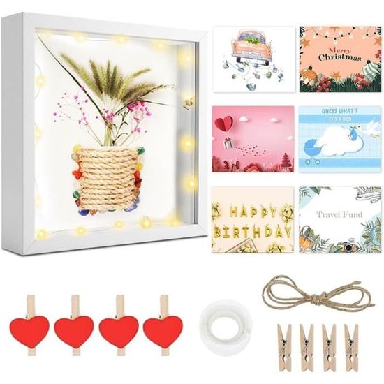 【Contenu du produit】La taille du cadre photo rempli est de 22 x 22 cm, avec une profondeur intérieure de 3 centimètres. Les cadres photo 3D ajoutent de la fraîcheur et de la chaleur à votre maison., 3., Conservez de bons souvenirs, des photos de voyage, des photos de vie, des coquillages, du sable, des fleurs, de la peinture diamant 5D et tout ce que vous aimez avec des cadres photo portraits. Boîte Ombre Pour Souvenirs Cadre Photo 3D à Remplir, 20 X 20 Cm, Profond, à Remplir, Carré, En Bois, Idéal Pour Photos, Bouquet De Mariage Et Décoration DIY (blanc Cadre Bouquet De Mariage Conservation Cadre 3d Profond Avec Vitre WISYOK Cadre 3D 22x22cm, 3cm Profondeur, Photo à Remplir, Vitrine Cadre Photo Profond à Remplir La profondeur intérieure de 3 cm offre suffisamment d'espace pour votre travail créatif Largement utilisé : les cadres photo 3D peuvent préserver de beaux souvenirs, tels que des chaussures de bébé, des cadeaux de mariage, des photos de voyage, des photos de vie, des fleurs séchées, etc. Vous pouvez le placer sur la table ou l'accrocher au mur pour exposer vos photos et vos souvenirs. Vous pouvez le remplir de souvenirs, de photos et de petits cadeaux et créer une œuvre d'art décorative unique Cadre photo 3D 21 x 30 cm - Chêne carré à remplir - Plus profond pour... 【Matériau de haute qualité】Le cadre photo 3D est fabriqué en matériau composite de bois de haute qualité, est bien fait, ne laisse aucune empreinte digitale, est incassable et durable. Puis créez différentes décorations 2., Le cadre de support à l'arrière du cadre en bois permet de le placer horizontalement et de manière stable. Vous pouvez le placer librement sur un plan de travail, un bureau ou le fixer au mur avec des clous non marquants.