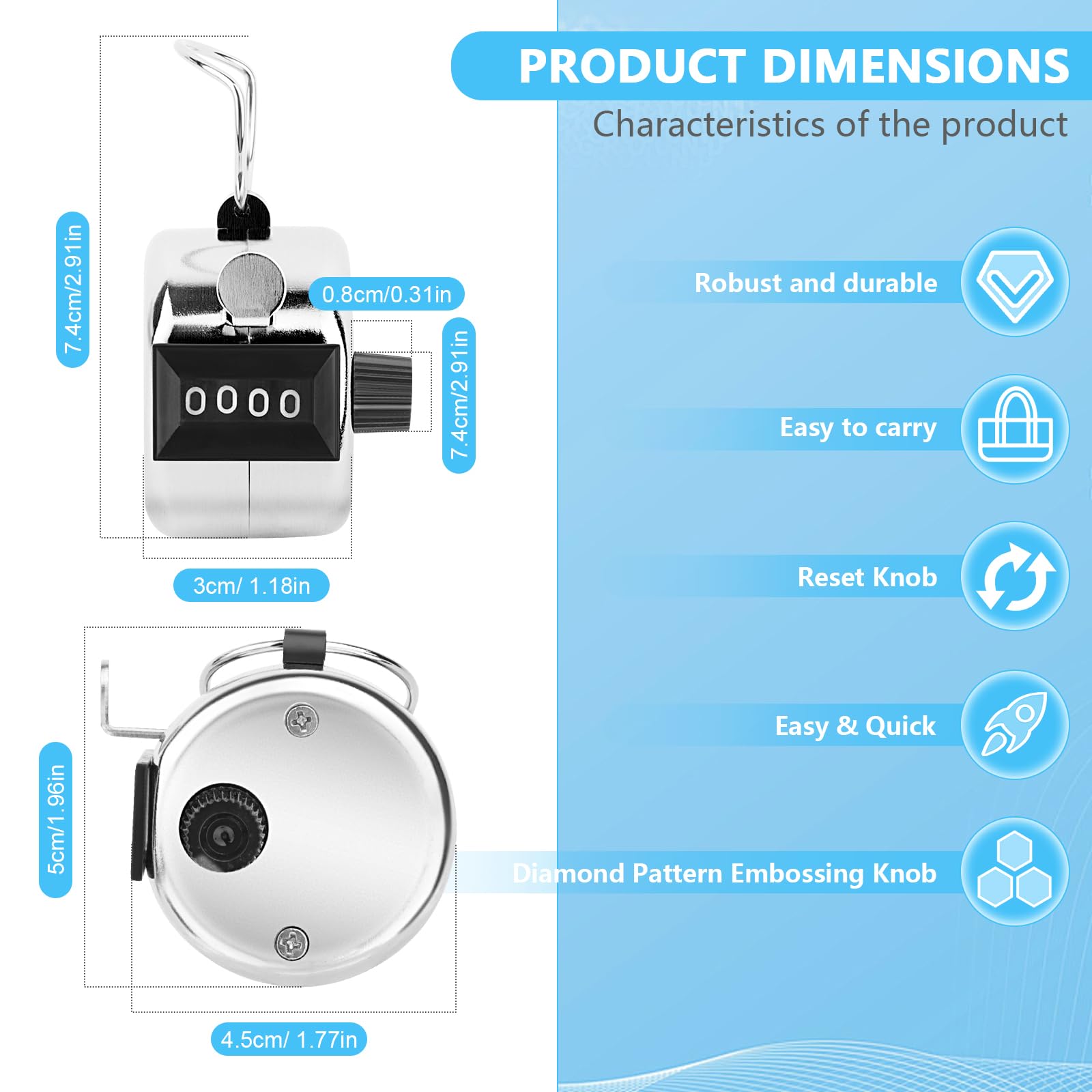Facile à utiliser - Avec un mécanisme de clic simple, le clicker est facile à utiliser. Le grand écran permet de lire facilement les chiffres,qui vous permet de toujours garder une vue d'ensemble. Le clicker peut être utilisé comme compteur de rangées, compteur de tours ou compteur de personnes Large application: convient à une variété de situations nécessitant un compteur de pièces, telles que les écoles, les stades, les terrains de golf, les restaurants et les bars, le comptage des invités, le comptage circulaire, les roues au crochet / tissu et d'autres scénarios de comptage et de comptage. Compteur De Pitch En Métal # Compteurs Manuels Clickers # Compteur De Doigts Manuel, Compteur De Pitch En Metal Compteurs Manuels Clickers Compteur De Doigts Manuel Compteur De Clics A 4 Chiffres Pour Le Sport La Rangee L Evenement Scolaire Le Tricot Le Comptage De Compteur à cliquer 4 Chiffres, Compteur Manuel en Métal, Compteur à cliquer 4 Chiffres Mécanique Clicker pour Compteur Manuel mécanique pour Sport Golf Compte de Pas, Compte Jusqu'à 9999 Clicker pour Compter, marquer Le Golf Compteur Manuel pour Golf Sport Entraîneur École Compteurs Manuels,Click Compteur, Compte Personne Manuel, Compteur de Comptage, Compteur a Personne, Golf, 4 Chiffres Compteur Mécanique Compteur Manuel Compteurs Manuels, Compteur Manuel 4 Chiffres, Compteur À Main avec Anneau De Doigt, De plus, les anneaux multifonctions robustes offrent une adhérence supplémentaire sur le sol et peuvent être utilisés pour les attacher aux doigts ou les porter autour du cou avec une corde. Notre compteur répond et compte avec précision en appuyant simplement sur le bouton en haut et peut compter de 0 à 9999., Il y a un bouton de Réinitialisation sur le côté qui tourne dans le sens horaire pour une Réinitialisation rapide. Compteur de cellules manuel, LAB-ONLINE® - Materiel pour Laboratoire Compteur Manuel 4 Chiffres - Golf Sport Entraîneur - Compteurs Manuels Facile à utiliser: il y a un bouton de Réinitialisation sur le compteur et il est facile de revenir à zéro en tournant simplement le bouton et le nombre. Avec une surface lisse et un poids léger, nos comptoirs sont faciles à transporter et peuvent vous apporter une expérience d'utilisation plus confortable. La surface lisse et le support de bague sur le dessus gardent le comptoir en sécurité dans vos mains., Lisse et confortable.