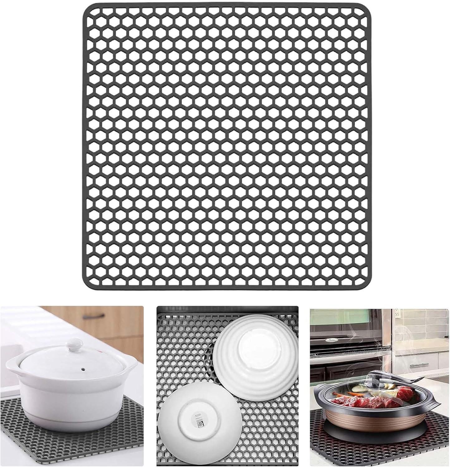 Ajustement flexible : ce tapis d'évier en silicone souple s'adapte facilement au fond de votre évier de cuisine offrant une couverture complète et une protection contre les rayures et les bosses, tandis que sa taille de 30 x 30 cm s'adapte à la plupart des éviers standard Utilisation polyvalente : ce tapis en silicone polyvalent peut remplir plusieurs fonctions, agissant comme un protecteur d'évier, un tapis de séchage de vaisselle, ou même une protection extérieure de cuisine générale, améliorant son utilité dans n'importe quel environnement de cuisine. Résistance à la chaleur : capable de résister à des températures allant jusqu'à 260 °C, ce tapis vous permet de placer des ustensiles de cuisine chauds en toute sécurité, tout en soulevant l'évier de 0,9 cm pour faciliter le drainage efficace à travers son trou de fuite Tapis de séchage de vaisselle en silicone - VBESTLIFE - Gris... Utilisation polyvalente : parfait comme protection d'évier ou protection générale de cuisine, ce tapis polyvalent améliore la fonctionnalité dans n'importe quel environnement de cuisine tout en évitant d'endommager votre vaisselle Tapis d'évacuation en silicone pour évier de cuisine et de Entretien facile : fabriqué à partir de silicone souple, ce tapis peut être lavé sans effort avec de l'eau ou placé dans le lave-vaisselle pour un nettoyage rapide, ce qui rend l'entretien de la cuisine simple et efficace Matériau de protection doux : fabriqué en silicone doux, il offre un rembourrage efficace pour vos plats et éviers, aidant à éviter les dommages tout en offrant une performance durable Tapis De Séchage Vaisselle Antidérapant Yuanpgky Tapis D'évier De Cuisine En Silicone, Ce Filtre Carré Antidérapant Est Fabriqué En Matériau SS De Qualité Supérieure Résistant à La Rouille, Pour Le Drainage De L'évier De Cuisine Et Tapis Silicone Cuisine Caractéristiques : Nom de la pièce : tapis d'évier de cuisine., Matériau : silicone. Caractéristiques : Ajustement flexible : le tapis d'évier en silicone est conçu pour s'adapter facilement au fond de votre évier de cuisine, couverture complète et pour une protection contre les rayures et les bosses. Séchage rapide : avec un extérieur lisse et des espaces spécialement conçus, le tapis permet à l'eau de s'écouler rapidement, réduisant l'accumulation d'humidité et gardant votre environnement de cuisine propre et hygiénique.