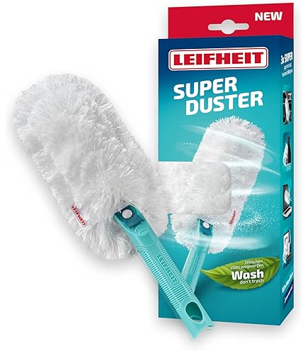 Dépoussiérage facile - La taille XL permet de nettoyer facilement de grandes surfaces, la housse du plumeau peut attraper une grande quantité de poussière; le côté étroit peut être utilisé pour les coins Le lot de deux housses dépoussiérantes pour le plumeau SUPERDUSTER XL de Leifheit allie durabilité et haute efficacité. Le textile en microfibre 360° peut être lavé jusqu'à 50 fois à 40 °C et offre une alternative aux produits jetables, pour faire du bien à l'environnement et à votre portefeuille Le fait que la housse du plumeau soit lavable permet de préserver le climat tout en ménageant votre porte-monnaie. Plumeau microfibre - La housse anti poussière est équipée d'un textile microfibre à 360 degrés qui absorbe la poussière, les cheveux et les allergènes et les retient sans les disperser Livraison - Leifheit Housse à poussière pour le plumeau Superduster XL, housse XL du nettoyeur lavable à 40 degrés jusqu'à 50 fois, numéro d'article : 41252 Facile à utiliser - La housse du plumeau ménage se détache facilement du plumeau Superduster XL par un bouton-pression et se fixe à nouveau après le lavage Le plumeau télescopique permet ainsi d’atteindre des endroits en hauteur de manière sûre et pratique. Housse Super Soft Parquet Housse De Rechange Leifheit Profi XL Super Soft - Pour Balai à Plat - Nettoyage Sols Sensibles Leifheit Serpillière Alternative durable - Le plumeau microfibre est lavable car sa housse peut être lavée jusqu'à 50 fois à 40 degrés; cela préserve non seulement le climat, mais aussi le porte-monnaie Grâce à la combinaison simple avec le manche Click System Leifheit, le Superduster XL peut se transformer rapidement en un plumeau extensible. Le revêtement anti-poussière se détache facilement du Superduster XL pour le laver à l’aide d’un bouton-pression La housse se fixe et s'enlève à l'aide de boutons-pression,qui permet un remplacement rapide et sûr sans outils. Idéal pour nettoyer les meubles, les étagères, les radiateurs, les appareils et autres endroits où la poussière s'accumule facilement Plumeau Microfibre Lavable Leifheit Hoes Voor De SUPERDUSTER XL Plumeau, Duurzame Hoes Met Microvezel Textiel, Ecologisch, Wasbare Plumeauhoes Housse Plumeau Leifheit Le tissu en microfibre 360 degrés absorbe la poussière, les cheveux et les allergènes et les retient.
