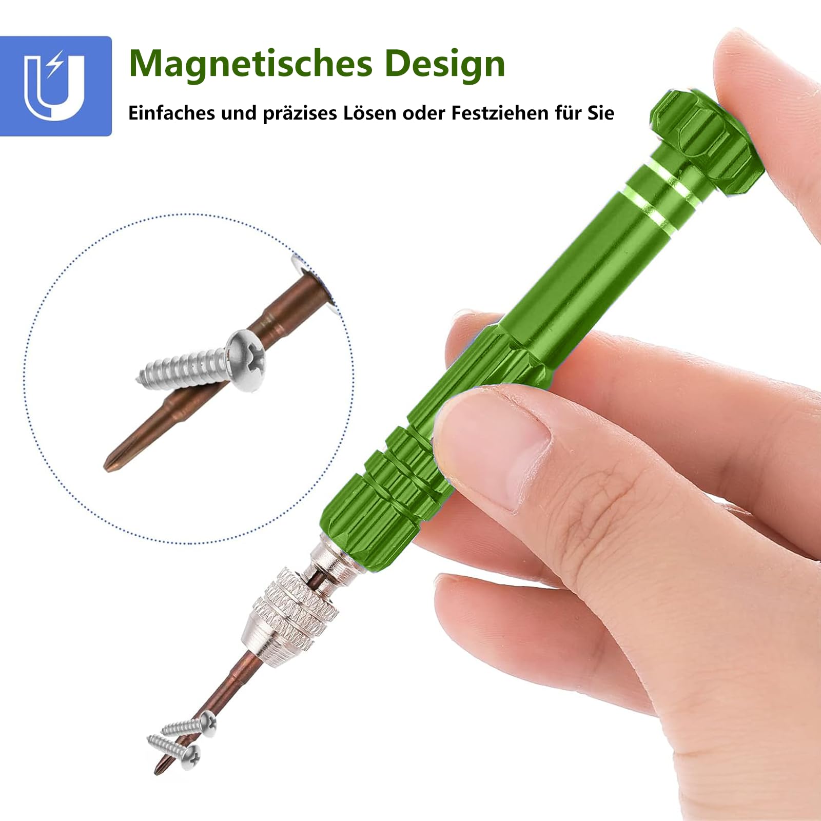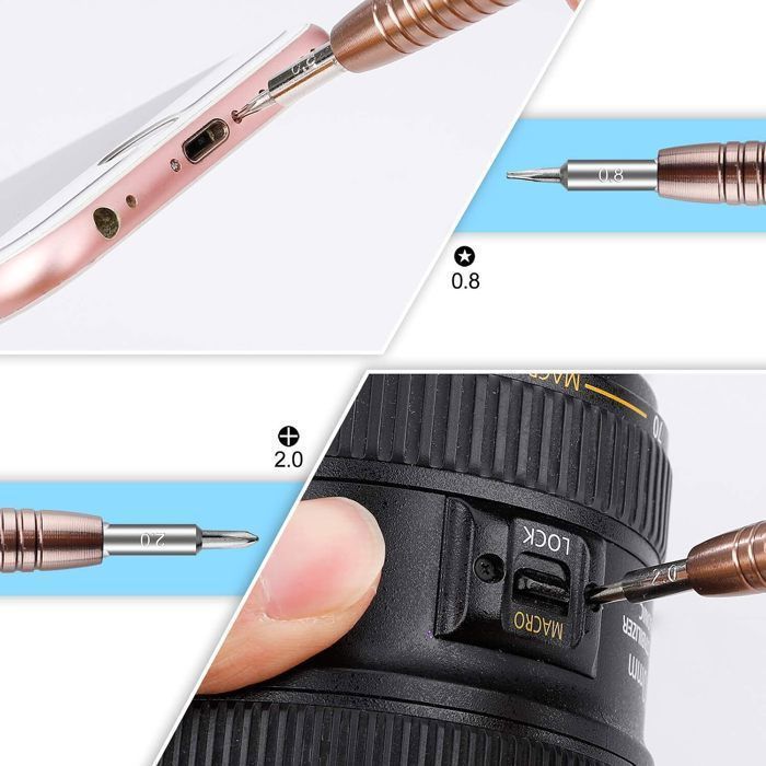 Tournevis de Precision 25 en 1 Pour Téléphone Portable PC Montre - Tournevis et tourne-écrous - Achat & prix Tournevis Aimanté Vinabo Jeu Tournevis De Précision 32 En 1- Mini Set Tournevis Magnétique Bricolage Electronique De Réparation Kit, Outil Informatique Pour PC, MacBook, IPhone, Lunettes, Montre, Smartphone Kit Tournevis Avec une taille de 10 cm, il est compact et peu encombrant, ce qui le rend pratique à ranger et à transporter. Contenu : 1 tournevis + 5 têtes de rechange. Fonctionnalités polyvalentes : le mini tournevis cruciforme comprend des têtes de tournevis plats de 1,0 mm, 1,2 mm, 1,4 mm et des têtes de tournevis cruciformes de 1,4 mm, 1,6 mm, qui peuvent être remplacées selon vos besoins. Le jeu de mini tournevis 5-en-1 est un outil multifonctionnel idéal pour les réparations de précision. Il comprend trois tailles de tête de tournevis à fente (1,0 mm, 1,2 mm, 1,4 mm) et deux tailles de tête de tournevis cruciforme (1,4 mm, 1,6 mm Elle est également équipée d'une poignée antidérapante et de pointes magnétiques, ce qui permet de trouver et de manipuler facilement les petites vis. TOURNEVIS,PH1x45mm--mini tournevis pour montre électronique, outils... Nombreuses utilisations : le tournevis fin multifonction est polyvalent et peut être utilisé pour réparer les téléphones, lunettes, montres, ordinateurs portables et autres appareils électroniques nécessitant de manipuler de petites vis. Matériau de haute qualité : l'ensemble de tournevis 5 en 1 dispose d'un boîtier léger en acier allié et d'embouts magnétiques, les embouts de précision sont fabriqués en acier de haute qualité, spécialement durci par traitement thermique.