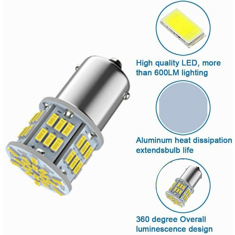 1400LM Canbus P21W 1156 BA15S LED ampoule LED feux diurnes DRL lampe pour Skoda Superb Octavia 2 FL 2010 2011 2012 2013 Lot De 2 Feux Arrière De Frein De Voiture 1156 LED Canbus 15 Smd Ba15s P21w Haute Puissance Blanc 6 000~p146706166 Cpolebev 2X 1156LED Canbus 15 SMD BA15S P21W Feu ArrièRe de Frein de Voiture Blanc 6000K Haute Puissance Corps en aluminium de haute qualité - Faible chaleur, faible consommation d'énergie et longue durée de vie jusqu'à 30 000 heures. Culot standard 1156, BA15S, 382, P21 W, etc. utilisée pour les feux de recul, les indicateurs de direction, les feux arrière, les feux de jour, etc