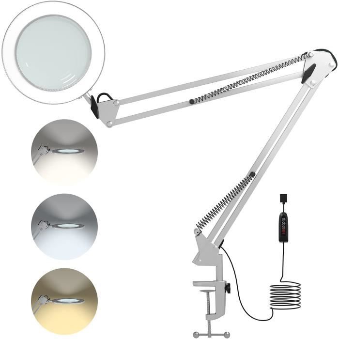 Libérez vos mains : grâce à la loupe avec pince USB et à la construction stable, cette lampe loupe reste fermement en place, de sorte que vous avez les deux mains libres pour votre travail. Loupe à lunettes à pince 10x, loupe professionnelle en aluminium pour mécaniciens, horlogers, photographes et bijoutiers La loupe avec pince USB est peu encombrante et se fixe facilement sur le bureau, l'établi ou la table. Cette lampe loupe réglable est particulièrement utile pour les tâches nécessitant de la précision, comme la couture, la soudure ou le travail sur de petits composants électroniques Convient pour les bricoleurs et les amateurs : cette loupe avec pince USB est un outil indispensable pour les bricoleurs, les amateurs et les personnes âgées. 3 lumières colorées et 12 niveaux de luminosité : la loupe avec pince USB offre trois couleurs de lumière différentes : chaude, neutre et froide, ainsi que 12 niveaux de luminosité pour assurer un éclairage optimal pour chaque situation. Le support à clip de 2,5 est plus grand et plus solide et s'adapte aux tables de 2,5 d'épaisseur. NEWACALOX Loupe avec lère et support, loupe 8X en verre véritable 2 en 1 et pince de bureau, 3 Liste des logiciels : 1 loupe avec pince USB Les lumières LED sont assez lumineuses pour vous faciliter la vision, mais pas si lumineuses qu'elles nuisent à vos yeux. Mode de commutation : télécommande. Lampe Loupe - Flexible avec Grossissement 3X 10X - 38 LED - USB - Pince... Loupe De Bureau Loupe 10x Avec Lumière Et Pince, Loupe Lumineuse à Intensité Variable, Bras De Lampe Réglable En Acier Inoxydable, Grande Lampe De Bureau LED, Mains Libres Pour Travaux Manuels, Loisirs Mode d'éclairage : 3 modes de couleur réglables et 12 niveaux de luminosité.
