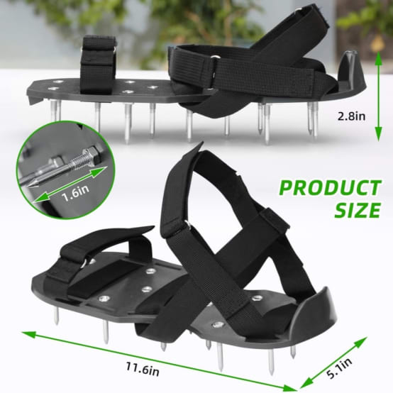Robuste et durable : les chaussures aératrices de pelouse avec fermetures en métal de qualité supérieure et sangles de qualité supérieure restent fermes et sûres même en cas d'utilisation prolongée. Lors de la prochaine tonte, portez des chaussures aératrices de pelouse pour un terrain sain., 3., Un grand avantage est la conception automatique de la saleté et des feuilles. Grâce au mécanisme innovant à ressort à double semelle, aucune terre de gazon ne reste collée à l'aérateur de pelouse. Très facile à installer, idéal pour une aération rapide et efficace. Il est donc parfait pour les hommes et les femmes qui veulent entretenir leur pelouse. équipement Jardin Aération Sol AIQII Aérateur De Pelouse Chaussures à Ongles Avec Sangles Réglables Et Scarificateur En Métal Semelle à Pointes Amovibles Les chaussures d'aération de pelouse se glissent bien dans la pelouse et se retirent facilement de celle-ci, des trous de taille uniforme assurent ainsi une image propre. Montage facile : les chaussures aératrices de gazon comprennent également 8 élastiques, 26 vis, 1 clé, 4 lacets et 16 ressorts. Chaussures aératrices de pelouse : grâce au mécanisme à ressort à double semelle de nos chaussures d'aération, la terre de gazon ne reste pas collée aux semelles des ongles, ce qui vous évite de nettoyer péniblement et d'aérer votre pelouse en douceur. Les chaussures aératrices de pelouse sont faciles à mettre et la boucle assure un maintien sûr. Chaussures à ongles en herbe Spike Soccer Nail - CIKONIELF - Noir... Ce n'est qu'avec les chaussures à pointes d'aération pour gazon que vous pouvez facilement aider l'herbe à absorber l'eau et l'air des racines profondes pour rendre la pelouse plus saine. Sans scarificateur électrique coûteux et bruyant, transformez votre jardin en une oasis de verdure Taille unisexe : la sangle avant est réglable, de sorte que les chaussures d'aération peuvent être portées par les femmes et les hommes avec des tailles de chaussures de 39 à 48 pour aérer efficacement votre pelouse. Spécification : Dimensions : 30,5 x 14 cm Matériau : polypropylène., Couleur : noir. Chaussures aératrices pour gazon MCBOSON Vert et noir - Jardiland Chaussures d'pelouse pour Gazon - Sandales à Pointes pour aérer la pelouse | Sandales d'aération Chaussures d'aération polyvalentes : que ce soit dans le jardin, sur les terrains de sport ou sur les chantiers de construction, nos chaussures d'aération de pelouse sont idéales pour la ventilation de la pelouse, l'ameublissement du sol et les travaux de chape.