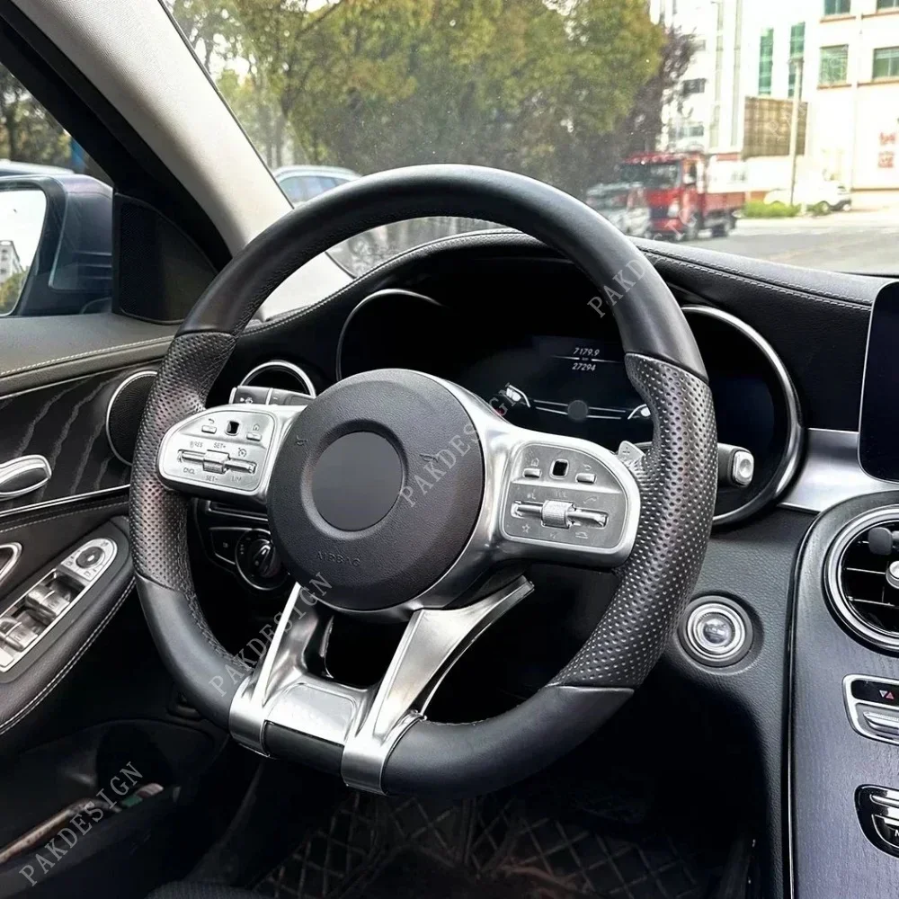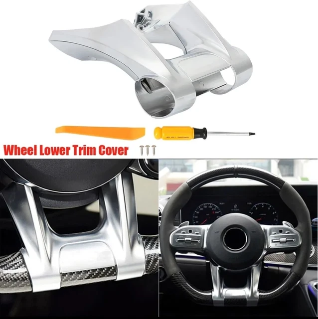Style Inférieur ABS Revêtement D'habillage Inférieur De Volant Plat De Voiture, Pour Mercedes Benz AMG 2019 + Sport W177 W247 A B C E CLS Classe W205 W213 W257 CLA C118 Accessoire Intérieur Voiture Style Agressif 2019 Conçu pour une installation facile et une utilisation durable. Modèle de voiture compatible : pour Mercedes-Benz W177 W205 C118 C257 W213 W463 H247 X247 X253 C253 W167 X167 Sprinter ; si le film est déchiré ou décollé. gratuit. Design par défaut de cette housse Améliorez l'intérieur de votre Mercedes-Benz avec cette luxueuse housse de volant en fausse fourrure. Conçue pour les modèles Classe E, Classe A, Classe C, GLC, GLB et GLA. Prise en main confortable en toutes saisons Veuillez vérifier le modèle de votre véhicule avant d'acheter. Parfait pour rafraîchir l'intérieur de votre véhicule avec un look moderne et de haute qualité. Revêtement inférieur de volant plat pour Mercedes Benz AMG Sport Aucun outil nécessaire - Il suffit de l'aligner et de le verrouiller pour assurer un maintien sûr. Caractéristiques : Sportif et élégant : Donne à votre intérieur un look agressif et de haute qualité sans aucune modification. Rafraîchissement rapide : les pièces du volant usées ou rayées sont immédiatement rafraîchis. Profitez d'un volant rafraîchissant et plus sportif. Protection contre les rayures : protège votre volant de l'usure quotidienne et rafraîchit son apparence. Améliorez votre intérieur avec ce design élégant et ajoutez une touche sportive et personnelle à votre volant tout en le protégeant des rayures. Fabriquée en plastique ABS de haute qualité, cette housse est robuste mais légère et s'adapte à la courbure du volant de votre véhicule pour un look sans couture. Adhérence et confort améliorés - La surface texturée améliore la manipulation tout en protégeant la roue d'origine.