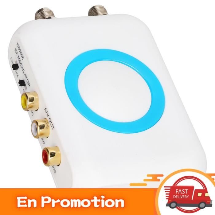 Adaptateur HDMI vers coaxial, modulateur RF PLL, interface multimédia Modulateur NTSC 1080P Modulateur HDMI RF, Convertisseur RF Modulateur HDMI Modulateur HDMI Vers RF ROBUSTE ET : le modulateur RF est fabriqué en matériau ABS, et longue durée de vie. Prend en charge l'interface multimédia HD 1., 4 et HDCP 1., 4., 4., PLUG AND PLAY : L'interface multimédia HD vers le modulateur RF ne nécessite aucune installation de pilote, portable, flexible, plug and play., 5., ROBUSTE ET : le modulateur RF est fabriqué en matériau ABS, et longue durée de vie. Spécifications :Type d'article : Modulateur RF d'interface multimédia HDModèle : HDM61Matériau : ABSFormat standard TV : NTSCPlage de fréquences : NTSC : CH3=61,25 MHz CH4=67,25 MHzNiveau de sortie : 80 ± 5 dBuVSystème audio : M=4,5 MHzPort d'entrée : Interface multimédia HD br/Entrée RF : F FemelleSortie RF : F FemelleRésolution d'entrée : 1080P 1080i 720P 576P 576i 480pVersion de l'interface multimédia HD : 1., 4Version HDCP : 1., 4Comment utiliser :Installé et prêt à l'emploiListe des paquets :1 x modulateur RF d'interface multimédia HD1 x Câble d'alimentation1 x Manuel d'instructionsRemarque :Ce produit prend uniquement en charge la sortie au format NTSC et n'est disponible que sur les étagères des Amériques. Ce convertisseur HDMI vers RF prend en charge plusieurs résolutions : 1080p/1080i/720p/576p/576i/480p, et offre une large réponse en fréquence. Ce convertisseur coaxial HDMI vers RF permet une sortie RF directe via des connecteurs F femelles, sans installation de pilote CONTRÔLE PLL 1080P : contrôle PLL 1080P fréquence de travail VHF, entrée d'interface multimédia HD, entrée et sortie RF. NS00249-Modulateur numérique HDMI RF HD. fréquence VHF-UHF. PAL-NTSC... Prend en charge l'interface multimédia HD 1., 4 et HDCP 1., 4., PLUG AND PLAY : l'interface multimédia HD vers le modulateur RF ne nécessite aucune installation de pilote, portable, flexible, plug and play. Fabriqué professionnellement pour des performances stables.