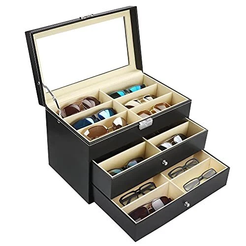 Les séparateurs amovibles peuvent être combinés librement pour améliorer l'utilisation de l'espace. Rangement pour lunettes / 1 pièce Boîte de rangement haut de gamme en PU pour lunettes de soleil et montres, 8 fentes avec fenêtre de visualisation transparente, amovible Le boîtier de lunettes à 8 compartiments est un outil de stockage efficace conçu pour le stockage de plusieurs paires de lunettes. LARGE APPLICATION : L'étui à lunettes peut être largement utilisé pour les voyages, la présentation en magasin, le stockage à domicile et le stockage temporaire et d'autres scénarios, adapté pour stocker des lunettes de vue, des lunettes de soleil, des montres, des bijoux, des clés, des écouteurs et d'autres articles, garder tout en ordre tout en ajoutant une touche d'élégance à votre pièce, la valeur et la force en même temps. Il n'est pas non plus nécessaire d'ouvrir la boîte lors du contrôle de sécurité à l'aéroport, le contrôle de perspective est clair en un coup d'œil, ce qui rend le voyage plus pratique et plus rapide. Le panneau en verre acrylique à très haute transparence offre une fenêtre visible à 360° pour voir directement le style/couleur des verres à l'intérieur de la boîte, ce qui permet d'économiser du temps de recherche. HAUTE QUALITÉ : L'étui à lunettes est fabriqué en PU de haute qualité et en plaque de plexiglas, ce qui le rend robuste, durable, luxueux et élégant. STATION DE CHARGE efficace avec écran LCD 8 fentes pour AAAAAA NiCd RANGEMENT COMPARTIMENTÉ : L'étui à lunettes adopte une structure modulaire compartimentée, chaque compartiment est séparé indépendamment, avec une taille de 16,5 cm × 5,5 cm (adapté à la plupart des formes de lentilles), ce qui permet une classification précise pour le stockage et garantit que les lunettes ne sont pas faciles à glisser et à heurter les unes contre les autres. Spécification: 33,5 * 24,5 * 8,5 cm Couleur: Noir Matériel: PU Quantité: 1pc Remarque: Veuillez lire attentivement les dimensions du produit avant de commander. L'étui est également équipé d'une serrure de sécurité en métal pour éviter que les lunettes ne glissent, ne se cassent ou ne se perdent. BOITE DE RANGEMENT LUNETTES Thor Gris/Mint Boîtier Lunettes Velours PU POU- Boite A Lunette De Soleil - 12 Fentes A Lunettes - Rangement Lunette De Soleil 111680 Protection Lunettes Voyage La doublure intérieure est en velours microfibre, qui est doux comme de la soie au toucher et peut empêcher efficacement les lentilles de se rayer.