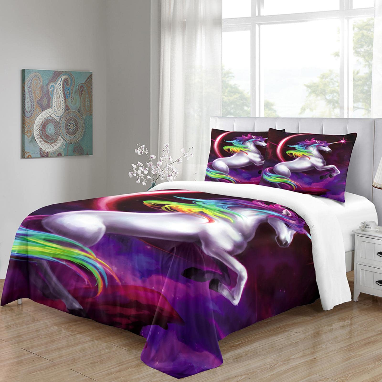 Son toucher doux et soyeux offre un confort optimal pour un sommeil réparateur. Notre housse de couette est très facile à entretenir, résistant à la décoloration et aux plis, lavable en machine à l'eau froide avec un cycle délicat, sécher par culbutage à basse température et ne pas blanchir HENGYUEXIN Textile de Maison: Notre mission est de créer des produits qui font sourire toutes les générations. Entretien facile : Idéal pour la vie moderne, cet ensemble est lavable en machine à froid, passe au sèche-linge à basse température et peut être repassé si besoin. Alliant style et praticité, il est idéal pour rafraîchir chambre, chambre d’amis ou espace de vie. Ensemble housse de couette : Comprend 1 housse de couette réversible (90 x 190 cm) et 1 taie d’oreiller assortie (65 x 65 cm). Avec fermeture éclair discrète et 4 attaches aux coins, la couette reste bien en place. Housse de Couette 220x240cm - Coloré - 3D - Synthétique - Chambre... Profitez de chaleur, de confort et d’une expérience visuelle unique avec nos textiles de maison haut de gammeRéversible & Élégant:Transformez votre chambre avec cet ensemble de housse de couette réversible. Housse de Couette - Dessin animé Licorne - Multicolore - Fibre de Housse De Couette Reversible Licorne Bedlam - Housse De Couette Licorne Phosphorescente - 200 X 140 Cm - 1 Taie D 'oreiller - Motifs Réversibles - Literie étoile Magique Et Licorne - Parure De Lit Licorne - Literie Rose Lilas Parure De Lit 90x190 Enfant Utilisable toute l’année, il garde la chaleur en hiver et la fraîcheur en été. Les deux côtés ajoutent une touche élégante et stylée, idéale pour moderniser n’importe quel intérieur avec peu d’effortMatériau:Fabriqué à 100 % en microfibre brossée, ce tissu innovant offre douceur, confort et durabilité. Design moderne et luxueux : Transformez votre chambre avec cette housse de couette réversible en microfibre ultra-douce et respectueuse de la peau. Avec ses motifs et couleurs élégants, elle apporte confort, vivacité et une touche moderne unique, rendant votre literie pratique et attrayante. Qualité premium : Confectionné en 100 % microfibre brossée haut de gamme, cet ensemble de housse de couette est léger, respirant et résistant.