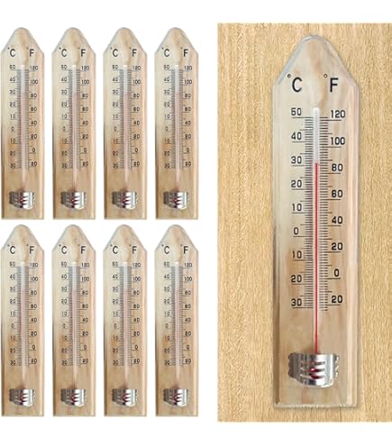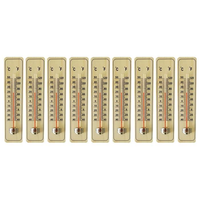 Convient pour accrocher dans votre maison, étage, sous-sol, garage, serre, bureau et jardin Grâce au panier de protection en métal, les thermomètres d'intérieur en bois sont protégés contre les chocs et autres agressions extérieures. Caractéristiques L'échelle varie de -40 °C à 50 °C ou de -40 °F à 120 °F et est visible à distance grâce à l'inscription facile à lire., Œillet pratique. Le thermomètre et l'hygromètre peuvent être installés sur le mur, et son design tendance en fait un bel ajout à n'importe quelle pièce La solution économique et simple avec un aspect sobre donne au thermomètre une décoration polyvalente et Thermomètre multi-usages : chiffres clairs et faciles à lire. Caractéristiques : Échelle de température de -40 à 50 °C., Matériau : bois., Couleur : marron. NIKJEBDF Lot de 5 thermomètres analogiques en bois - Pour intérieur et Design trou de suspension : thermomètre de chambre en bois avec trou de suspension, pratique à accrocher. Grâce au panier de protection en métal, les thermomètres d'intérieur en bois sont protégés contre les chocs et autres agressions extérieures. 【Deux indicateurs de lecture en ℃ et ℉】Léger, avec des mesures de température Celsius et Fahrenheit. vecteur de thermomètre de météorologie. échelle Celsius, Fahrenheit... Lot 10 Thermomètres Déco Thermomètre Mural Intérieur Ou Extérieur - Résistant Aux Intempéries Thermomètre -40°C à 50°C Lot de 10 thermomètres d'intérieur en bois : lot de 10 thermomètres muraux pour l'intérieur et l'extérieur.