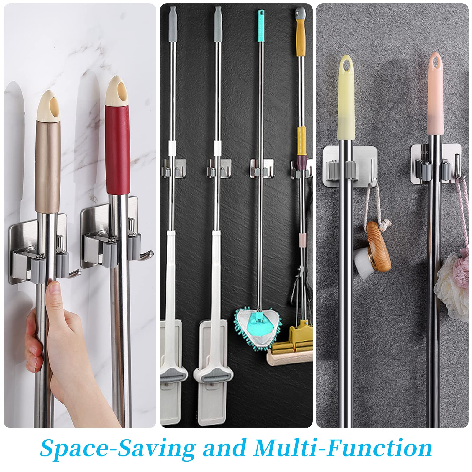 【Matériaux de qualité supérieure】Pince à balai en acier inoxydable SUS 304, étanche et antirouille. Accroche balai mural en acier inoxydable permet de trier les balais, les vadrouilles, les brosses, les pelles, les râteaux, les outils de jardin, etc. Choix idéal pour la maison, la cuisine, la salle de bain, le garage, le jardin Êtes-vous fatigué de la vadrouille, du balai, du jardinage et des autres outils en désordre dans votre maison? - Porte balais mural sans percage avec 1 étagère et 1 crochet, peut vous aider à ranger des balais, des vadrouilles, des râteaux, des chiffons, des brosses, des battes de baseball, des parapluies, etc. 【Étanche et durable】Le fixation murale sans percer a une bonne résistance à l'eau et une bonne adhérence une bonne adhérence. (Veuillez vous assurer que la surface est sèche et propre avant de coller) La conception unique de la boucle triangulaire le rend plus antidérapant et durable, même s'il est utilisé dans la douche de la salle de bain. Conception antidérapante Le rouleau est fabriqué en silicone, qui est antidérapant et ne rayera pas l'objet suspendu. Accroche Mural AceMining Porte-Balais Mural - 5 Supports + 4 Convient pour les cuisines, les armoires, les jardins, les buanderies, sous les escaliers, le dos de la porte et le rangement garage. Haute qualité Fabriqué en acier inoxydable SUS 304 de haute qualité, stable et durable. 【Porte balai mural】Porte balai comprend 1 support et 1 crochet. C'est un organisateur parfait pour un placard, une salle de bain, un garage, un jardin, un hangar ou un atelier. [UTILISATION INTÉRIEURE ET EXTÉRIEURE]-Comme le porte-balai est fabriqué en acier inoxydable SUS304, il fonctionne bien en extérieur grâce à sa conception résistante aux intempéries Porte Balai Mural Sans Perçage Porte Balai Mural En Acier Inoxydable, Accroche Balai Mural Avec 3 Emplacements Et 4 Crochets Pour Cuisine Salle De Bain Garage Et Jardin Grisgubbon 84539463 Fixation Balai Adhésive 3M Argent 【Économie d'espace】 Le support balais mural en tant organisateur mural, il peut garder votre chambre bien rangée, économiser de l'espace, mettre de l'ordre dans votre maison et votre vie.