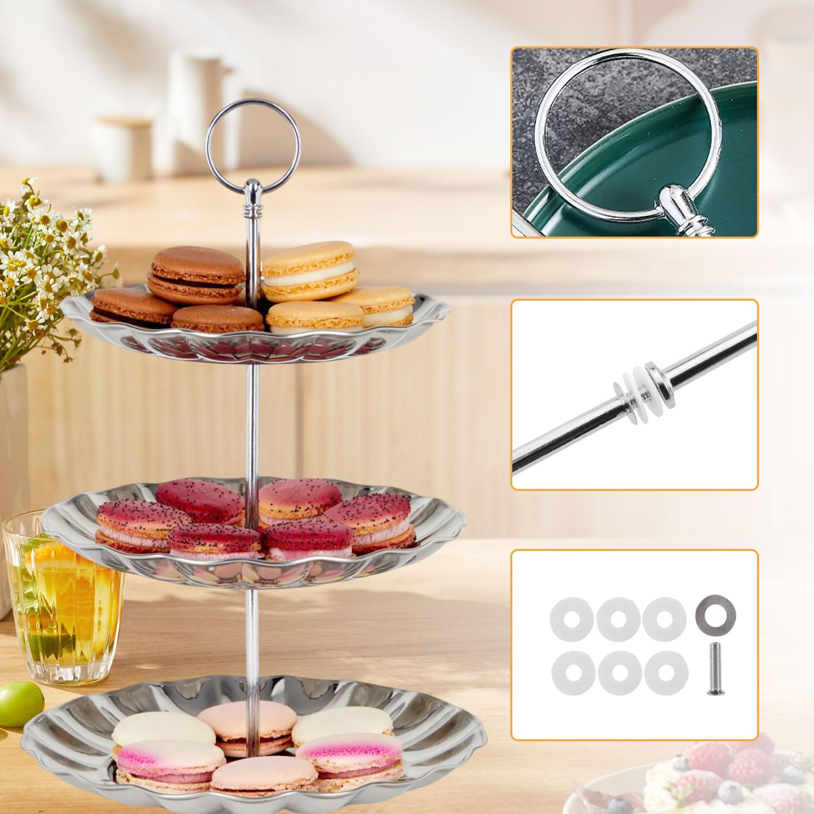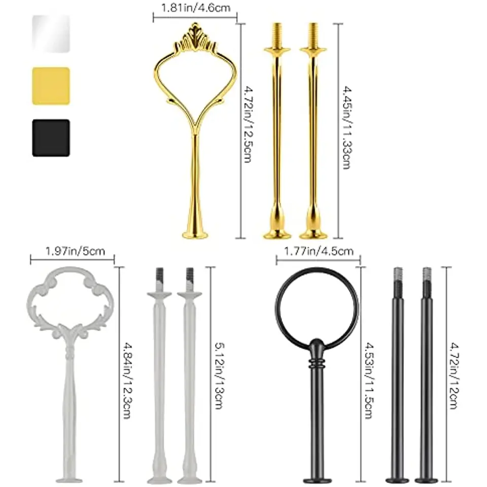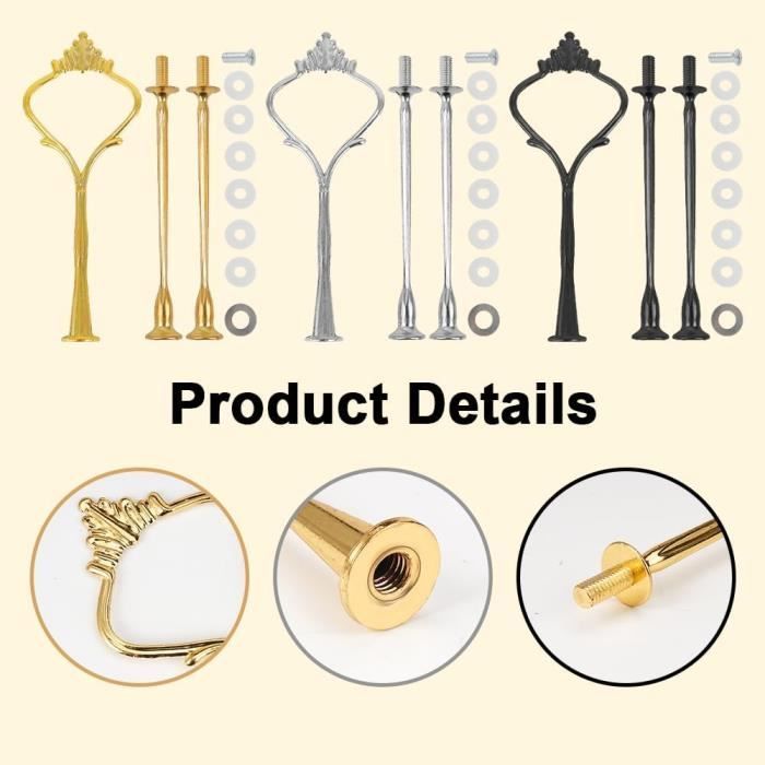 Couleur : Argent et noir Hauteur : Jusqu'à 32 cm une fois assemblé Contenu : 6 jeux de tiges métalliques (3 argentées, 3 noires), vis et patins en mousse Découvrez la solution idéale pour mettre en valeur vos créations culinaires avec notre présentoir à gâteaux à 3 étages. Plateau A Etage 6 Présentoir À Gâteaux En Tiges De Métal, Ensembles Tiges Pour Presentoir A Gateau Sublimez votre cuisine ou vos événements avec cet outil indispensable pour tous vos besoins sucrés et salés Assemblage facile : Les tiges sont dotées d'un trou central pour une installation rapide et facile. Cette adaptabilité vous permet de présenter une variété de gourmandises et de confiseries, répondant ainsi à différents événements et besoins de présentation. Presentoir A Gateau Ensembles Tiges Stand À Gâteaux Accessoires Kits... Faciles à monter et à démonter, elles sont parfaites pour diverses occasions, des mariages aux réceptions à domicile. Il suffit de percer un trou au centre de vos assiettes et d'assembler le présentoir sans effort. Hauteur réglable : Chaque tige métallique est divisible en trois sections, vous permettant de personnaliser le présentoir de 1 à 5 étages. Conception compacte : Lorsqu'elles ne sont pas utilisées, les tiges métalliques se démontent pour gagner de la place. Idéal pour présenter gâteaux, plateaux de fruits, cupcakes et autres, il complètera à merveille vos présentations culinaires. Ce système facilite leur rangement et leur transport, offrant ainsi une grande flexibilité d'installation. Dzsomt Presentoir a Gateau 6 Sets Presentoir Gateau Mariage 3