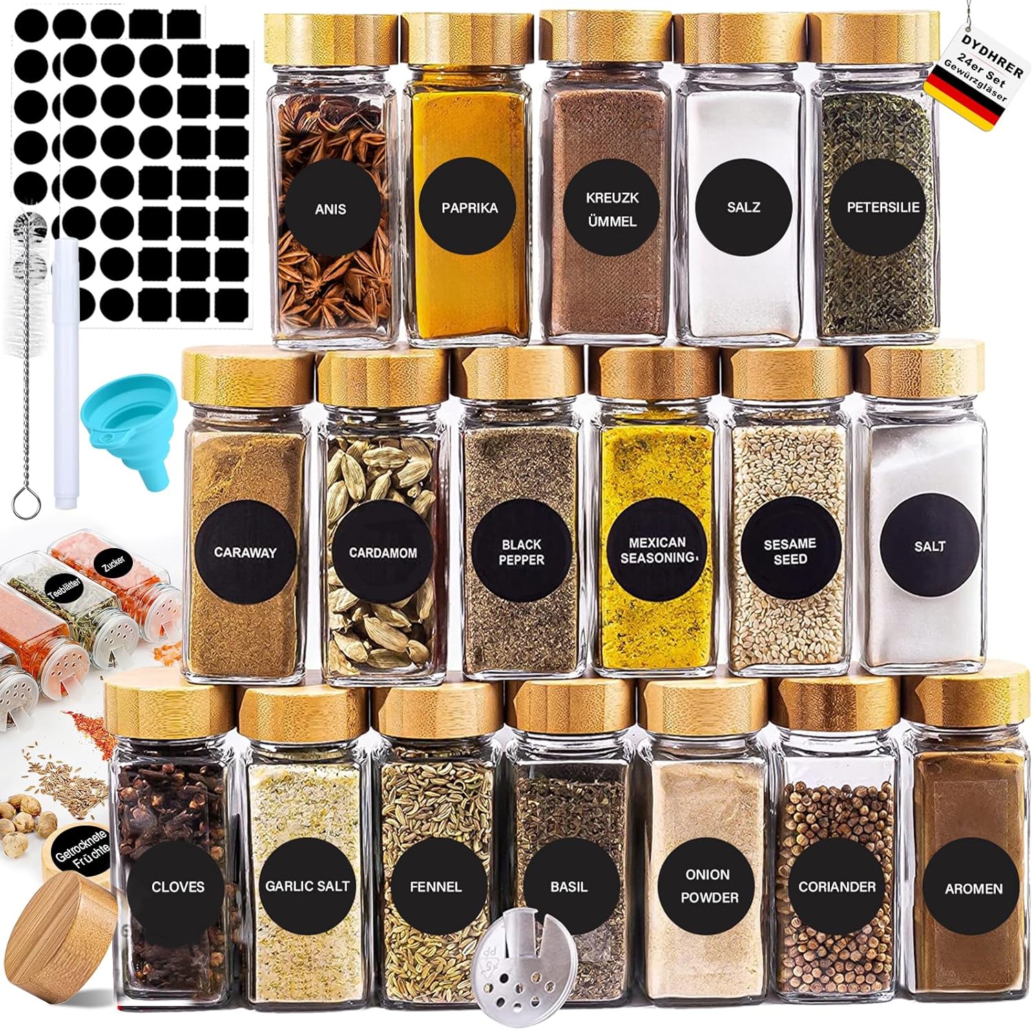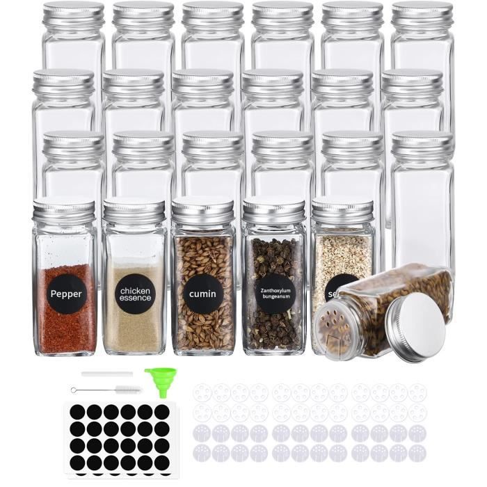 Mambocat Lot de 6 pots à épices - Contenance 300 ml - Pots en verre réutilisables avec bouchon en liège - Verre rond de haute qualité - Pour la conservation du thé, des herbes et des épices Le pot à épices a un couvercle en bambou avec un anneau en silicone qui assure l’étanchéité, protège de l’humidité et préserve la fraîcheur. Epices Cuisine ComSaf Pots à Épices Avec Étiquettes 240 Ml 12 Pièces, Bocaux Ronds Avec Couvercle En Bois Verre, Pour Piment, Cumin, Gingembre, Persil, Curry, Cuisine, Garde-Manger Et Barbecue Pots à épices En Verre 1 Temps de cuisson 2 L'heure du thé L’emballage solide du set de pots à épices protège efficacement contre la casse pendant le transport et assure une livraison en toute sécurité. Polyvalent & Idéal comme cadeau : Les contenants à épices sont idéaux pour les épices, herbes, thé, café, sucre ou snacks. ComSaf Bonbonnière en Verre avec Couvercle Lot de 2, Sucre Pot de Bonbons Vintage Style Pots et... COM-FOUR® 12x pots à épices avec accessoires - contrôle des épices en verre 120 ml, accessoires Verre robuste & Couvercle en bambou hermétique : Les pot a epices ont du verre épaissi, stable et durable. L’ensemble de pots à épices a une légère odeur naturelle qui disparaît après aération. Les étiquettes des bocaux à épices en verre ont une impression nette, sont résistantes à l’huile et à l’eau et faciles à essuyer – pour une identification rapide et un étiquetage flexible.