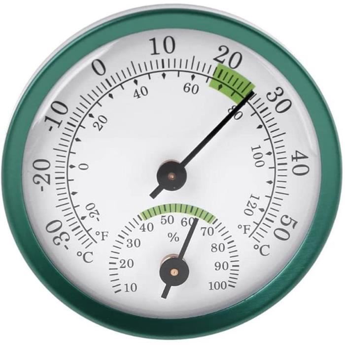 Thermomètre Hygromètre mécanique - Matériel spécialisé pour mesurer l Thermomètre Hygromètre Hygromètre De Thermomètre Mécanique Pour La Voiture Et L'intérieur Cadran Aluminium Mesure Humidité Température Accrochez-le au mur ou placez-le sur une table pour un accès rapide aux informations. SPEC: Type d'article: Hygromètre du thermomètre: alliage d'aluminium Plage de températures: -30 ° C ~ 70 ° C Plage d'humidité: 10 ~ Poids: env. [Mesures précises] Cet hygromètre / thermomètre fournit des lectures précises de température allant de -30 ° C à 70 ° C et de l'humidité de 10% à RH, pour accueillir diverses conditions climatiques. Plage de mesure : cet hygromètre/thermomètre peut mesurer avec précision la température et l'humidité simultanément, avec une plage de mesure de température de -30 °C à 70 °C, s'adaptant à tous les climats [Technologie de détection automatique] Avec un dispositif de détection automatique intégré, ce thermomètre hygromètre intérieur élimine le besoin d'étalonnage ou de batteries, fournissant des données en temps réel. Thermomètre Hygromètre Intérieur, 4 pièces Mini Thermomètre Digital à... [Utilisation polyvalente] Le thermomètre et l'hygromètre sans fil ronds peuvent être utilisés à l'intérieur sur les murs, les tables, les réfrigérateurs ou l'extérieur comme outil de mesure. 5,5 cm / 2,17 pouces Diamètre du dos: env.