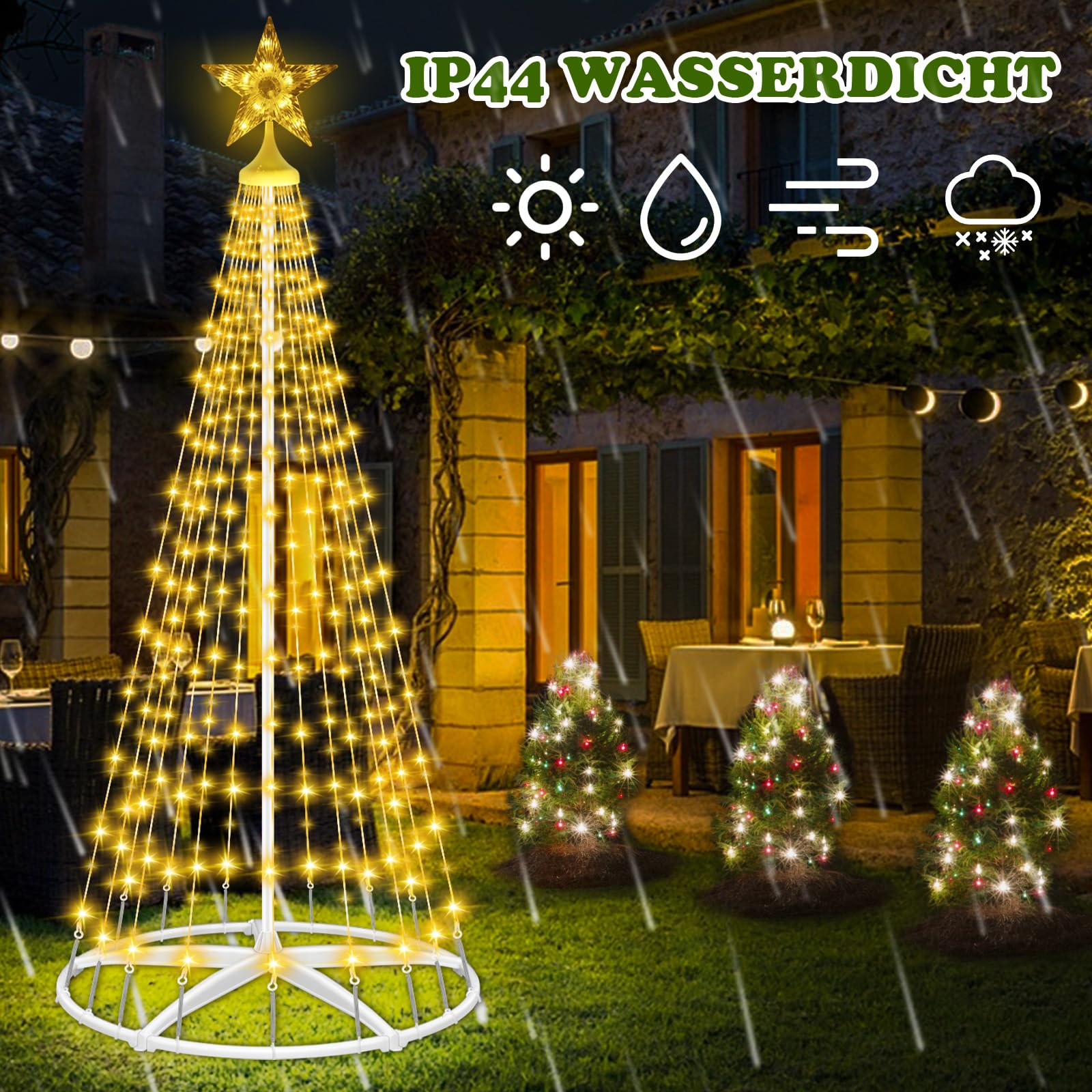 Fonctions de minuterie et de mémoire : lumières de Noël extérieures à LED pré-éclairées avec fonction de minuterie intégrée, 6 heures d'allumage et 18 heures d'arrêt. 2 méthodes de contrôle et 12 modes d'éclairage : utilisez la télécommande ou appuyez sur le bouton mode de l'adaptateur de cette guirlande lumineuse de Noël extérieure pour obtenir 12 effets d'éclairage : 1., combinaison, 2., en vagues, 3., séquentiel, 4., lueur lente, 5., Suivi/clignotant, 4., fondu lent, 7., paillettes/clignotant, 8., allumé en continu, décoration idéale pour Thanksgiving, Noël, nouvel an et toute autre fête ou fête. L'arbre lumineux pour arbre de Noël est étanche IP44, ce qui peut résister aux intempéries telles que la pluie et la neige, parfait pour l'intérieur, l'extérieur, la maison, la cour, le salon, le jardin, le balcon, le porche, le patio, la décoration de Noël. de sorte que l'installation de cet sapin de Noël LED soit facile et rapide. Installation facile et pliable : le sapin de Noël Extérieur est équipé de composants complets, notamment un corps de guirlande lumineuse, un support amovible, une bielle, un mousqueton et un insert de base en métal, etc. Sapin De Noel Moderne Arbre De Noël Géant Commercial Extérieur étanche De Haute Qualité Pour éclairage De Noël Extérieur - Chine Guirlande Lumineuse, Décorations De Noël Sapin Cone LumièRes Solaires à LED Lampes Solaires D'ExtéRieur Lampes Solaires... Sapin en métal doré à poser - Grand modèle Mathilde M