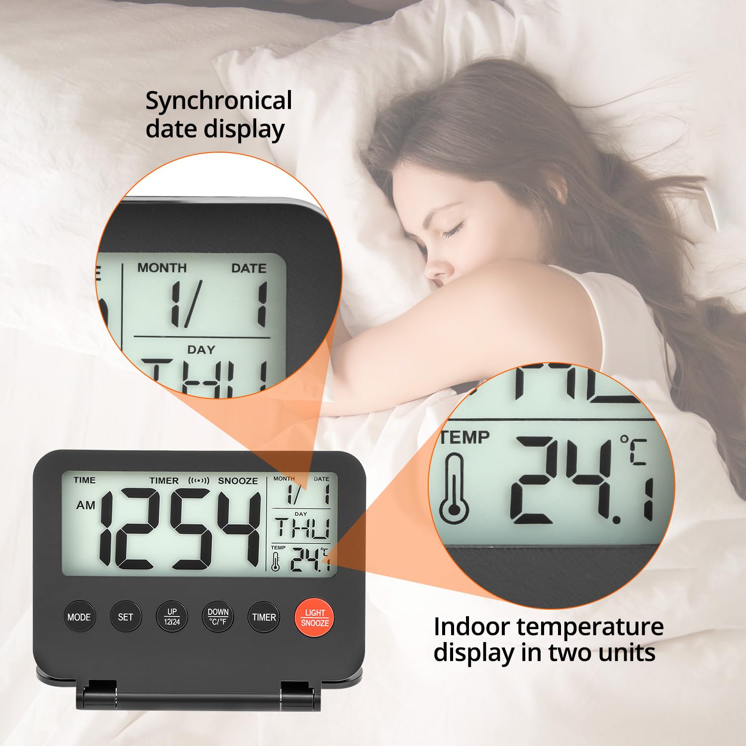 Précautions : pas de piles incluses, préparer soi-même 2 piles AAA. Comparaison des meilleurs Reveil De Voyage Digital de - Juin 2025 Réveil, Réveil Numérique à Piles avec Température, Calendrier, Rétroéclairé, Snooze, 12/24H, Petite Reveil Matin pour Voyage, Chambre, Bureau (Piles Incluses Conception conviviale : grand écran LCD clair de 9 cm et rétroéclairage si besoin. Fonctions polyvalentes : format 12H/24H, calendrier, avertissement de batterie et affichage de la température ambiante (℉/℃). Réveil De Température Intelligent Affichage Led Calendrier -Éclairé Numérique Bureau Snooze Mini... Compact et portable : dimensions de 10,2 × 8 cm, idéal pour les voyages et différents espaces. Choisissez Qwork, où votre argent travaille plus dur pour vous. Réveil Compact Avec Snooze Mxzzand Réveil Pliable Réveil Numérique De Voyage De Table Pliable Orloge Murale Numerique