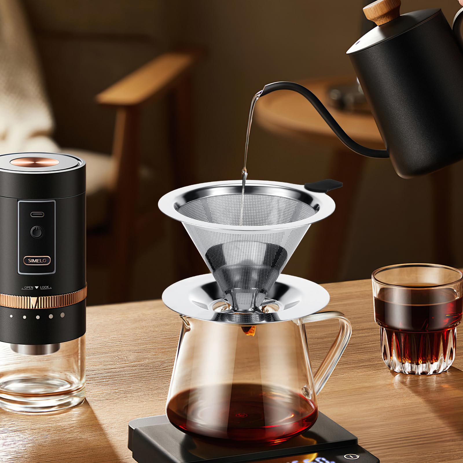 Il peut être plié rapidement après utilisation pour un rangement et un transport faciles. Réutilisable: Plus besoin d'utiliser des filtres en papier jetables, ils peuvent être recyclés de manière permanente, réduisant ainsi le gaspillage de ressources, étant respectueux de l'environnement et économique, et rentables pour une utilisation à long terme. Filtre à café réutilisable taille 4 acier inoxydable Que vous soyez en camping ou à l'hôtel, ce filtre à café réutilisable vous garantit une infusion riche et savoureuse partout où vous allez, sans occuper d’espace. Filtre pour la préparation du café entièrement en acier... Facile à utiliser: Ajoutez simplement de la poudre de café, puis versez lentement de l'eau chaude et le liquide de café s'écoulera lentement à travers le filtre. Filtre à café réutilisable PWSHYMI - 5 trous - Acier inoxydable Aucune étape compliquée n'est requise, vous permettant de profiter facilement de la saveur unique du café préparé à la main à tout moment et n'importe où. Facile à nettoyer: Le filtre à café a une surface lisse et le marc de café peut être nettoyé en un seul rinçage. Filtre Café Filtre à Café Réutilisable En Acier Inoxydable - Porte-filtre à Filtre Inox Pour Café Conception pliable: La conception unique permet au support de se déplier facilement et de s'adapter à la plupart des tasses. Petite taille et poids léger, facile à ranger et à transporter., 2., Le filtre à café est livré avec une cuillère à mélanger gratuite, l'ensemble parfait améliore la convivialité du produit., 3., Filtre en acier inoxydable 304 à double couche de haute qualité, ne nécessite plus de papier filtre, grande surface de filtration et conserve au maximum la saveur originale du café., 4., Nous nous engageons à offrir aux clients une expérience de magasinage agréable. Le filtre en acier inoxydable à double couche peut filtrer avec précision pour assurer une extraction uniforme de chaque goutte de café, tout en bloquant efficacement le marc de café fin, vous permettant de profiter du goût pur du café et du riche arôme naturel.