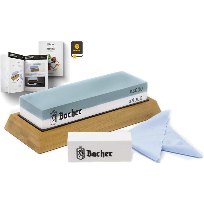Les dimensions 180 mm x 60 mm x 30 mm fournissent une surface d’affutage optimale même pour les grandes lames. Poids de la pierre: 600g Ils représentent une solution efficace et fiable pour la maison, l'extérieur, les ateliers, les restaurants et les salons de coiffure. Mode d’emploi: Étape 1 Mettez l’aiguiseur dans l'eau pendant environ 15 minutes. PIERRE A AFFUTER Kshzmoto 400 - 1000 3000 - 8000 Grit Premium aiguiseur Largeur de la base en bambou: 9., 5 cm Longueur de la pierre: 18 cm La pierre à eau double face 1000/3000 Bacher est destinée à l'affûtage de tous les types de couteaux Les grains sont certifiés JIS (norme industrielle japonaise) R6001, émise par la Japanese Standards Association 3000 - dédié à la finalisation du processus d'affûtage. Sur cette gradation, vous pouvez niveler et polir la lame. Longueur de la base en bambou: 21., 5 cm Le Bacher set inclut Pierre à affuter à double face, étui en caoutchouc-silicone, support en bambou antidérapant, pierre de fixation, chiffon de nettoyage en microfibre et un guide d’aiguisage électronique Étape 3 Placez le couteau à un angle approprié, puis déplacez la lame sur une pierre de moindre gradation. Étape 4 Change the side of the stone and make the same movements. Pierre À Affuter Les Renettes Le côté moyen est garni de 1 000 grains et le côté fin est garni de 3 000 grains. Pierre Affutage Couteaux 1000/3000 Pierre à Aiguiser - VBESTLIFE - Double Face - Grain 3000/8000 - Base En Kit Aiguiseur Avec Guide électronique Spécifications: Grains: 1000/3000 JIS (R6001) Apprenez en détail, comment préparer la pierre, tenir le couteau, aiguiser, finir le bord et reniveler la pierre pour une performance de longue durée., REMARQUE! Usage prévu: couteaux en acier, hachoirs, machettes, couteaux, burins, ciseaux, Abrasif: corindon Comment choisir le bon grain? Les meules sont le type d'aiguiseurs de couteaux les plus populaires et appréciés chez les utilisateurs. La pierre possède une large surface abrasive, ce qui garantit un ajustement parfait pour chaque taille de lame. Largeur de la pierre: 6 cm Que contient le coffret des pierres à aiguiser Bacher? La grande pierre à affuter fonctionnelle placée dans un support en bambou antidérapant est le moyen le plus facile d’aiguiser une lame. Apprenez en détail, comment préparer la pierre, tenir le couteau, aiguiser, finir le bord et reniveler la pierre pour une performance de longue durée. Pierre à Aiguiser Premium BACHER Grains 1000/3000 – Aiguiseur pour Couteaux avec Support en Bambou, Pierre Aplatissante et Guide électronique Détaillé Les pierres à aiguiser de Bacher est le meilleur choix pour vous! La pierre à aiguiser est faite de grains abrasifs comprimés et possède ces deux faces : 1000 – dédié à l'affûtage régulier des couteaux. PIERRE À AIGUISER À DOUBLE FACE DE HAUTE QUALITÉ : fabriquée à partir de corindon blanc d’excellente qualité. La pierre à eau double face 1000/3000 Bacher est destinée à l'affûtage de tous les types de couteaux : de cuisine, d'extérieur, de machettes ainsi que de canifs et bien d'autres.