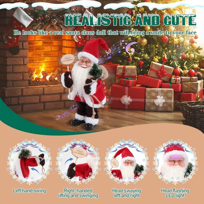 Pere Noel Twerk Ornement De Noël - Électrique - Père Noël Animé - PVC - Tissu En Peluche - Décoration Intérieure Père Noël Chantant Cdiscount Le travail soigné en fait une œuvre d'art dans votre vitrine. Village De Noël Lumineux, Animé Et Musical Piste De Ski Et Téléphérique... Jouet Père Noël articulé sur Tête à modeler Décorations de Noël animées : Le jouet du Père Noël musical portait des lunettes élégantes à monture doré et un foulard écossais rouge. Le Père Noël parlant est également livré dans une belle boîte-cadeau, parfaite pour offrir à vos proches comme un cadeau de Noël, apportant vos vœux et ajoutant à l'atmosphère festive des rassemblements familiaux en intérieur. Jouet animé - KZQ - Père Noël Dansant - Peluche douce - Musique Entourez le Pere Noel qui chante et regardez son spectacle magique, apportant sourires et joie à tous. Impressionnez votre famille et vos amis avec ce jouet de Noël animé qui contient un panneau qui dit « Merry Christmas » et chante le Père Noël Jingle Bell Rock. Peluche Animée de Noël : Impressionnez votre famille et vos amis avec ce jouet animé de Pere Noel qui twerk qui tient une pancarte disant « Joyeux Noël » et chante « Jingle Bell Rock ». Les mains du Père Noël animé se balancent de gauche à droite comme s'il dirigeait tout le monde pour un chœur ensemble. Vous pouvez placer le Pere Noel qui danse dans un endroit visible où tout le monde pourra le voir et lire sa pancarte à haute voix, créant ainsi une expérience merveilleuse pour votre célébration festive. Le sac à dos des cadeaux qu'il portait apportait des voeux de vacances à tout le monde, et son expression aimante réchauffait les cœurs de tous les présents, laissant une impression profonde sur tout le monde. Lorsque les jouets de Noël chantaient le vieux tube de Noël Jingle Bell Rock, les clochettes sur son chapeau sonnaient à cause de la vibration de son corps. Vous pouvez le mettre dans un endroit visible où tout le monde peut le voir et lire son message à haute voix, créant une merveilleuse expérience pour votre fête festive.