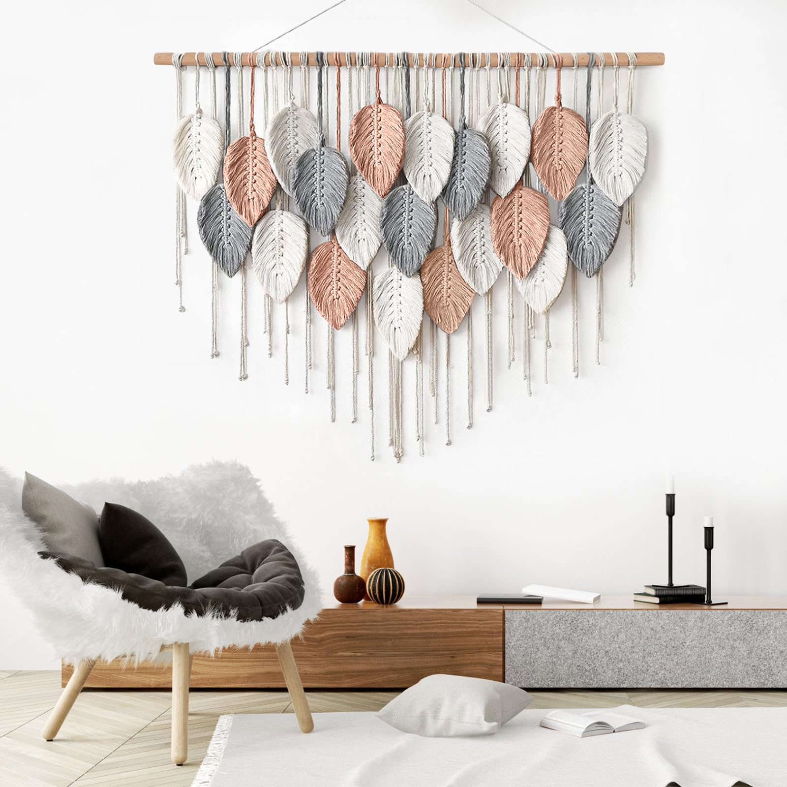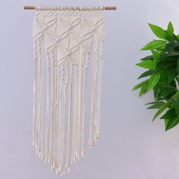 L'embellissement des feuilles mortes et des perles rondes crée une atmosphère romantique. Spécifications :Matériau : corde en coton et boisContenu :Tenture murale x 1Clou de 1,20 m x 1Remarques :1., Ne pas déchirer le ruban adhésif transparent sur la feuille, sinon la tapisserie ne sera pas fixée., 2., Le lavage en machine est déconseillé pour éviter tout dommage. Des perles en bois en forme de feuille et des cordes de suspension réglables peuvent être fabriquées à la main, combinées et assorties selon vos besoins pour créer une décoration murale unique Carillon à vent,Macramé tenture murale Boho tapisserie anges aile tissé Fabrication artisanale exquise : notre décoration murale est composée de corde de coton et de bâtons de bois. Il conserve sa beauté même après une utilisation prolongée, vous permettant ainsi de réaliser des économies d'entretien. Chaque feuille est soigneusement réalisée par des artisans qualifiés selon des techniques de tissage traditionnelles, rendant chaque décoration murale unique. Ce matériau de haute qualité ne se décolore pas et ne se déforme pas facilement. Tissage Main Coton Macramé Tenture Murale Boho Chic Tapisserie Tissée Coton Bohème Tissé Décoration Boho Chic Main Décoration murale bohème : style bohème, alliant forme de feuille et perles de bois naturel, simplicité naturelle, élégance et confort. Les quatre clous d'angle sont inclus, vous évitant ainsi d'acheter des clous supplémentaires., 3., Des perles en bois en forme de feuille et des cordes de suspension réglables peuvent être fabriquées à la main, combinées et assorties selon vos besoins pour créer une décoration murale unique., 4., Nos tapisseries tissées sont soigneusement confectionnées par des artisans expérimentés, utilisant des techniques traditionnelles de tissage de dentelle pour insuffler une atmosphère naturelle et humaniste à votre intérieur., 5., Elle peut être accrochée près du lit, au fond du canapé, ou associée à des plantes vertes et des murs de photos pour créer un coin personnalisé. Elles conviennent également aux espaces commerciaux tels que les cafés et les chambres d'hôtes, ajoutant un charme unique à l'espace.